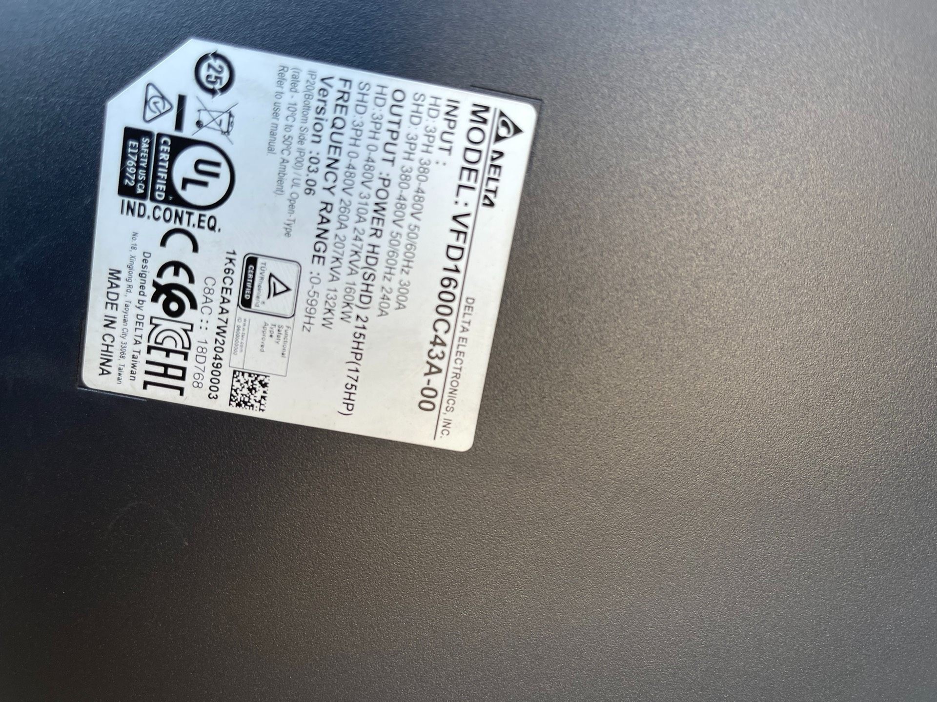 台达C2000+变频器VFD1600C43A-00,160K