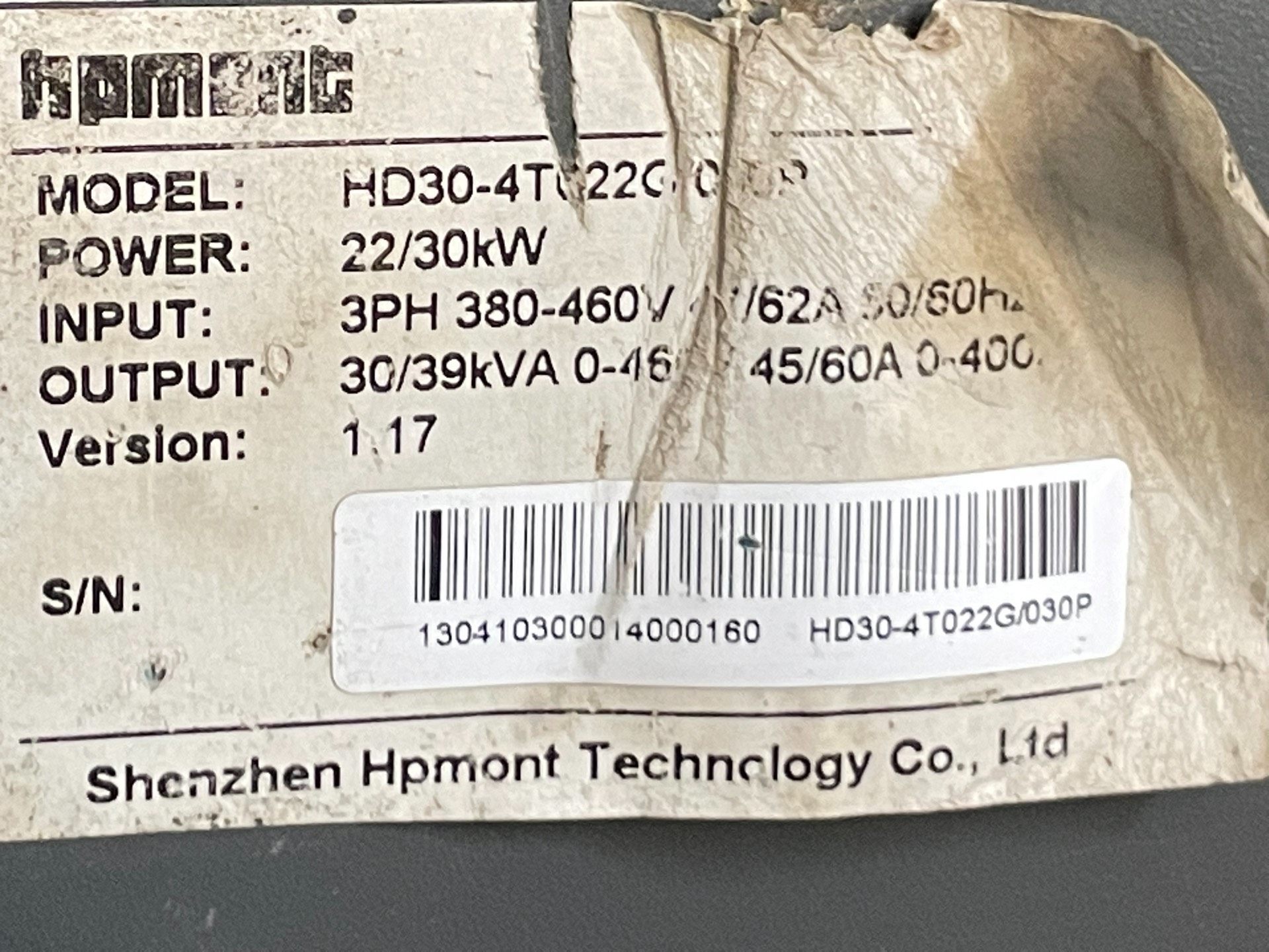 海浦蒙特变频器HD30-4T022G/030P,22/30K
