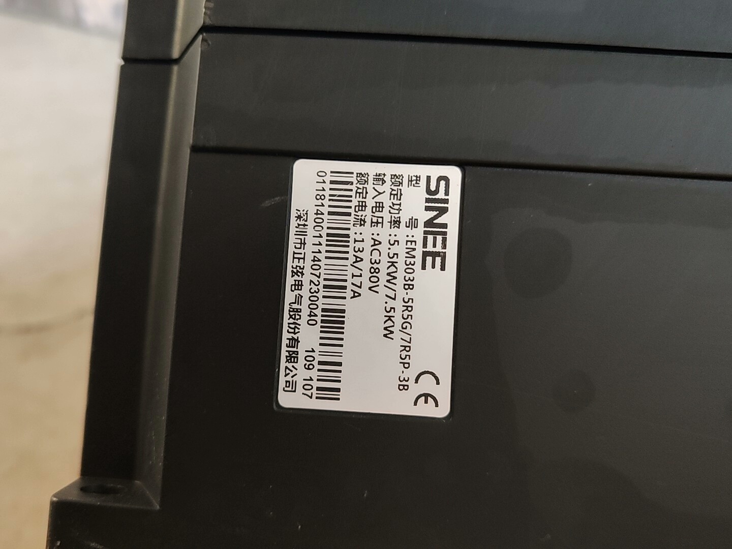> 正旋变频器。EM303B。5.5kw,测试好