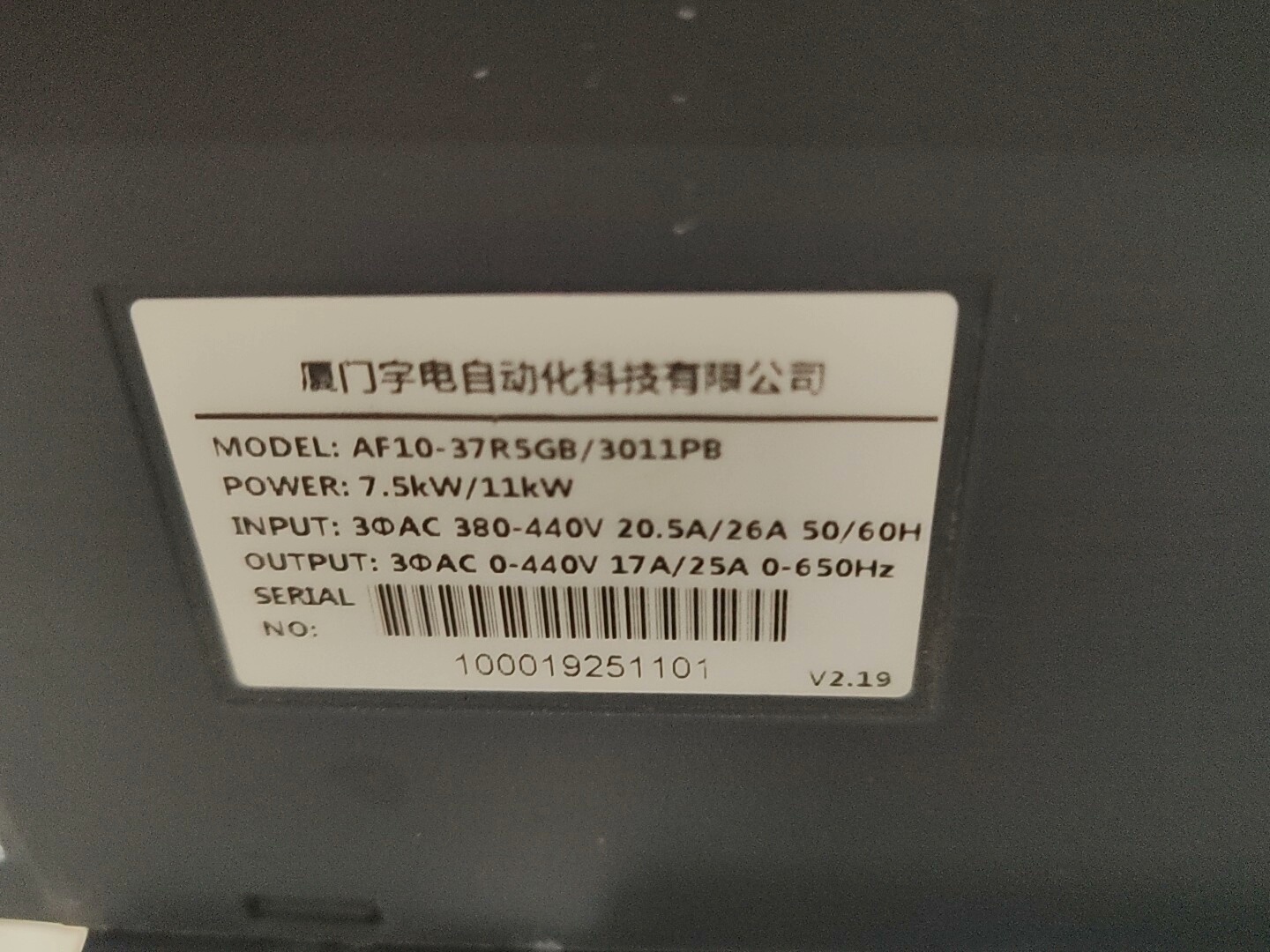 > 宇电变频器AF10-37R5GB/3011PB,7.5KW/