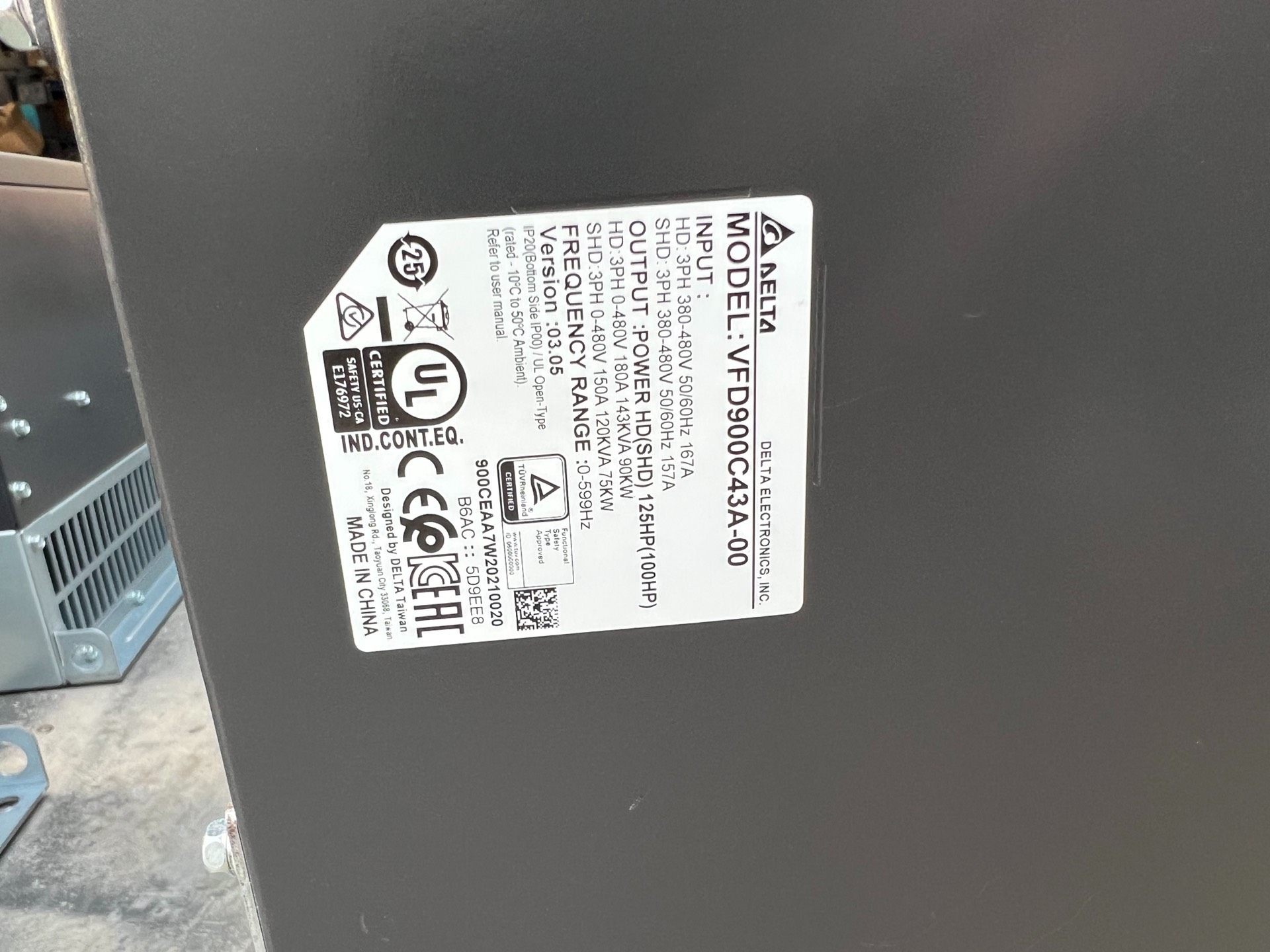 > 台达C2000变频器90KW,VFD900C43A-00,实