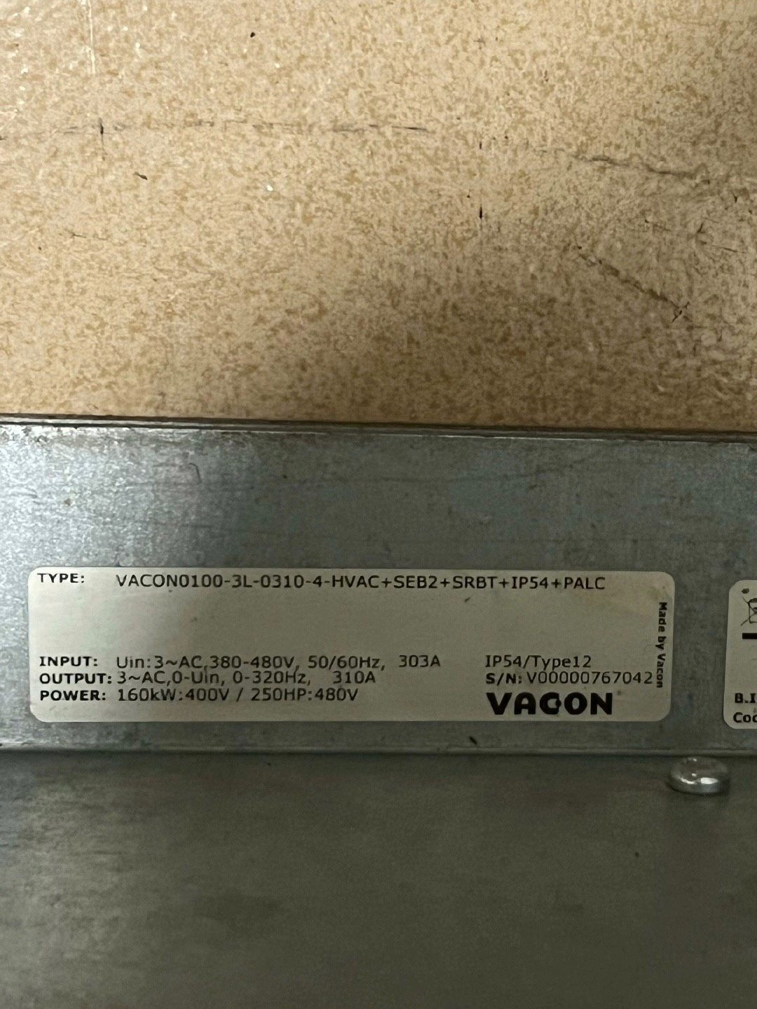 > 伟肯变频器 VACON 0100-3L-0310-4-HVA