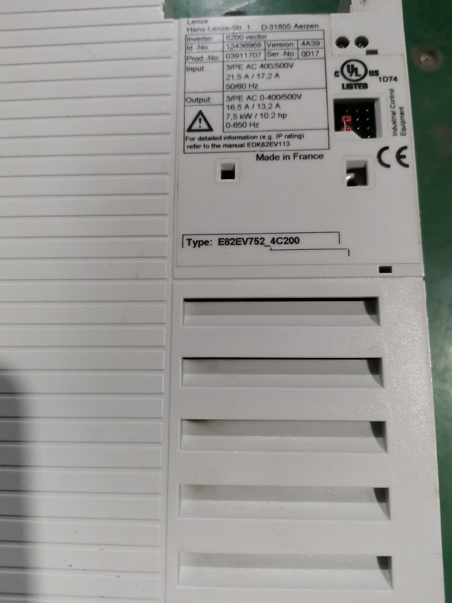 > 原装拆机伦茨变频器E82EV752-4C200 E82E
