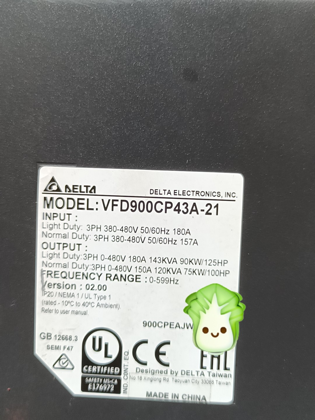 二手台达CP2000两台,型号:VFD900CP43A-21