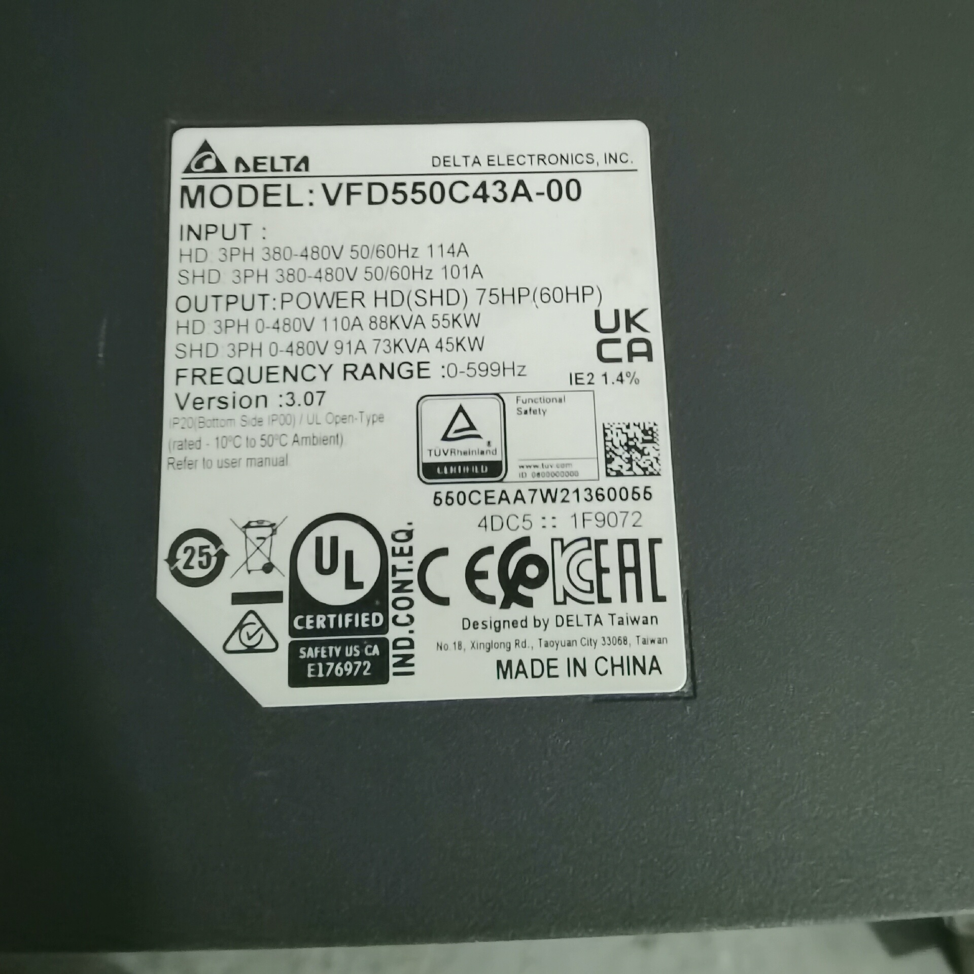 > 台达C2000+系列变频器55kw 三相380V