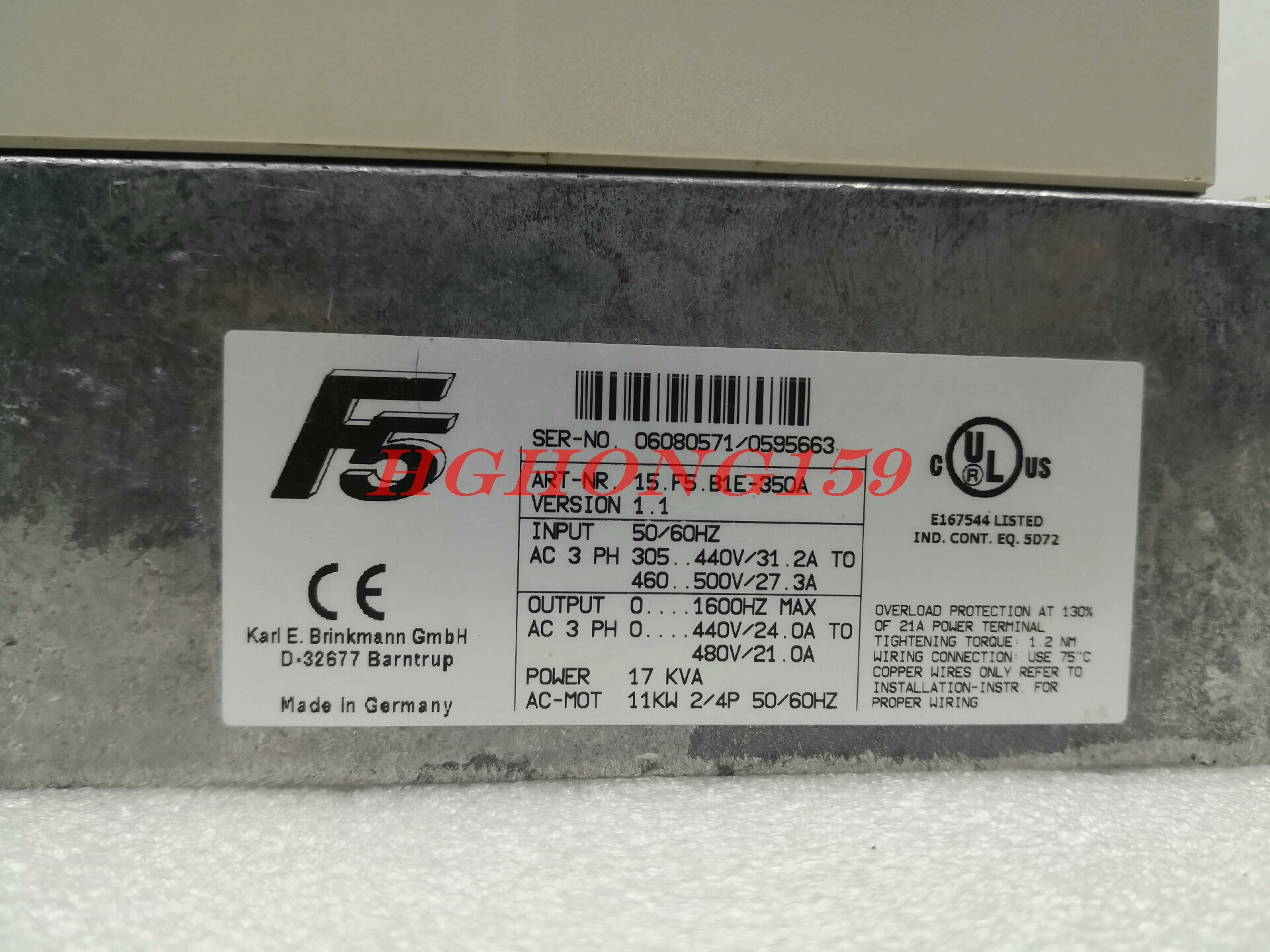 > 科比F5变频器15.F5.B1E-350A 库存机未使用 颜