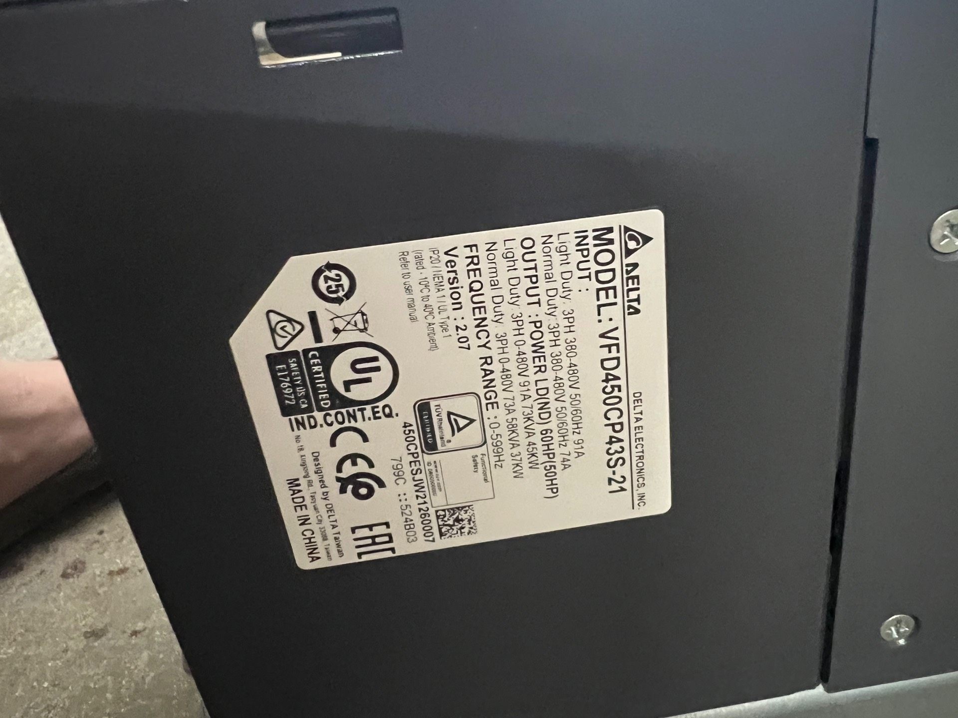 > 台达CP2000变频器45KW,VFD450CP43S-21