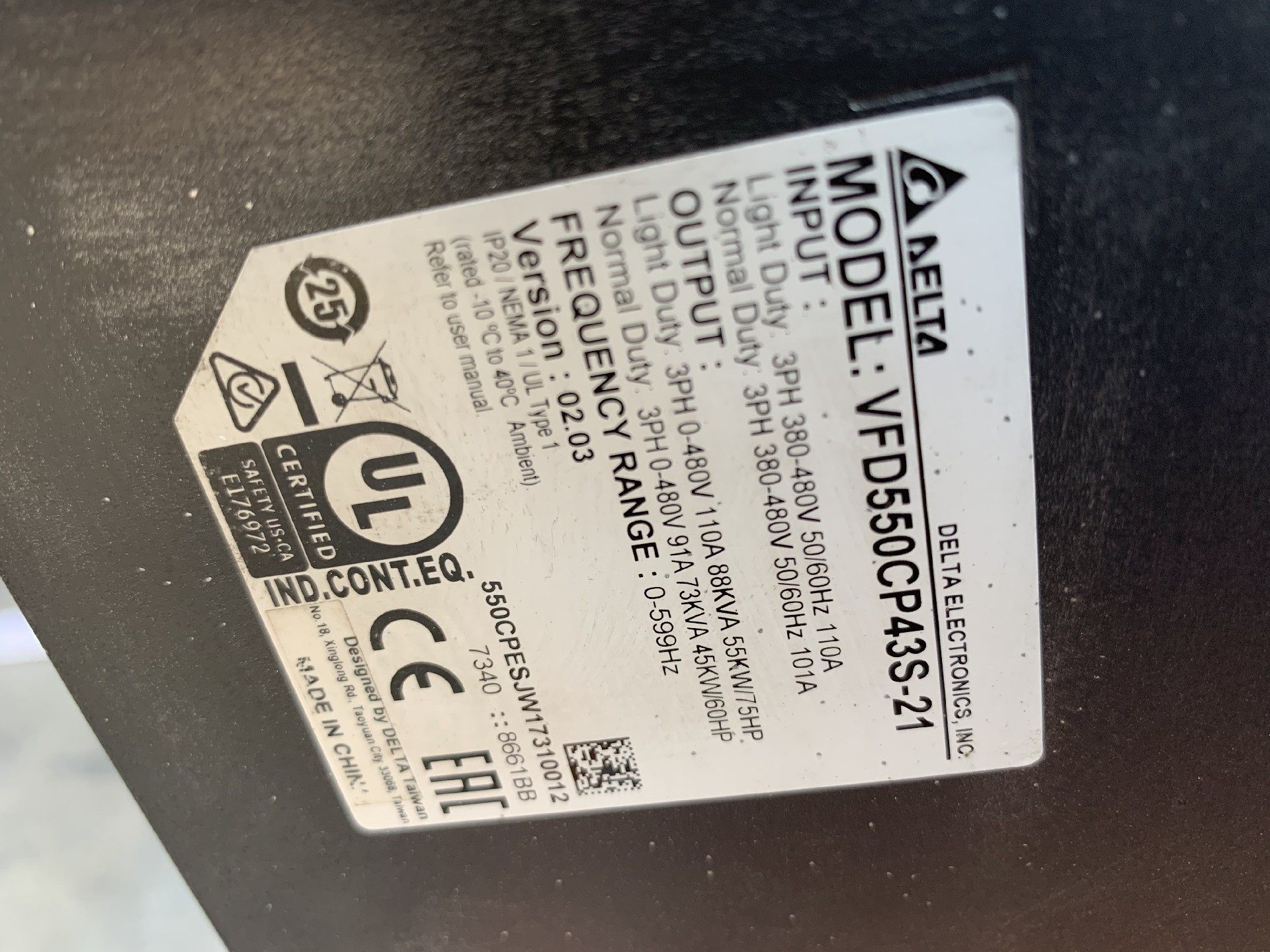 台达CP2000变频器55KW,VFD550CP43S,实物