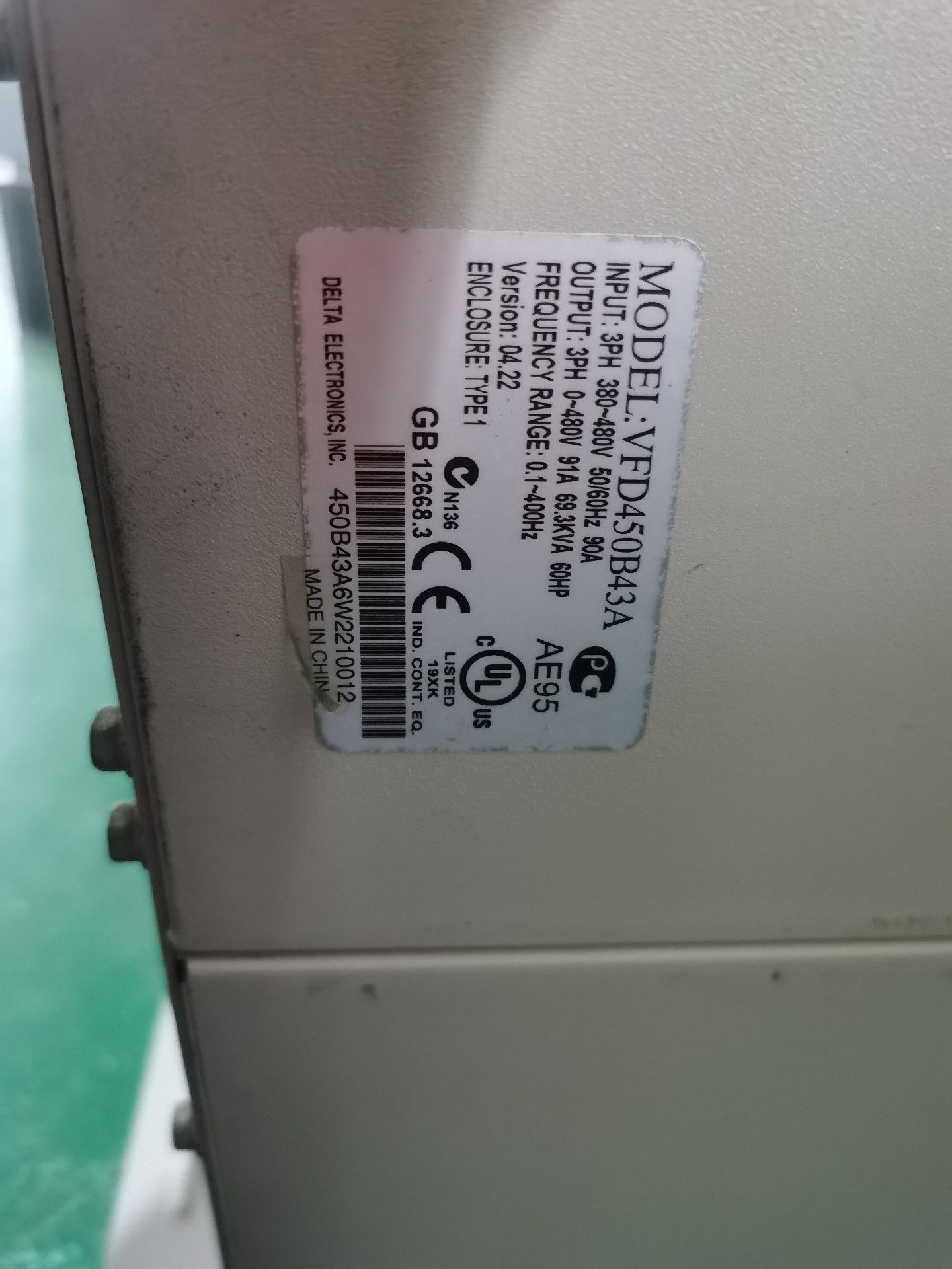> VFD450B43A 45KW 380V台达拆机重载变频器