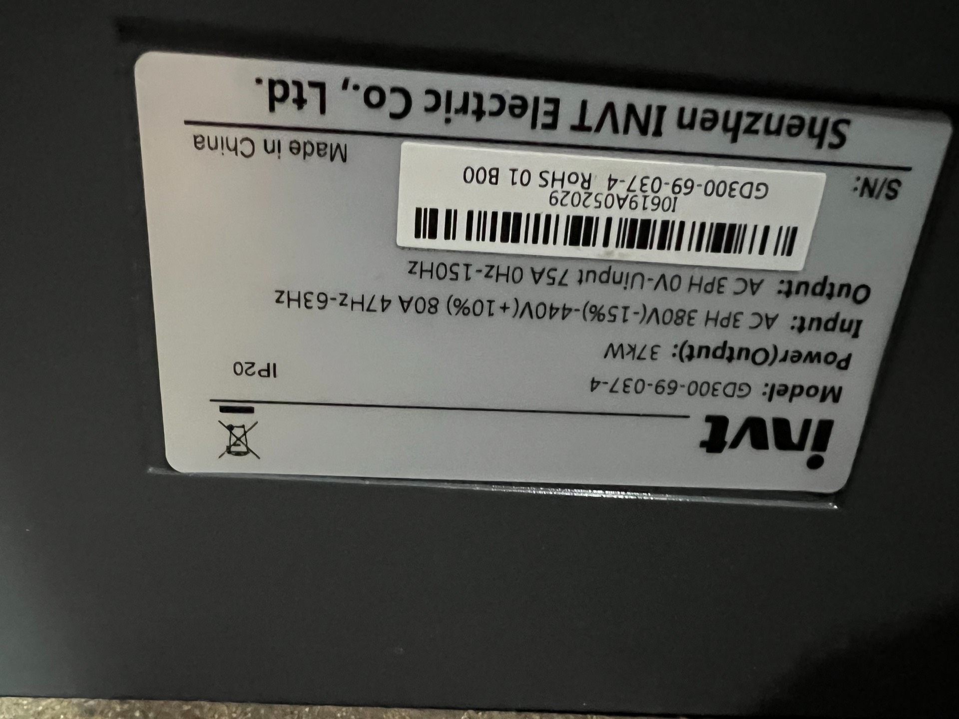 > 英威腾GD300变频器37KW,实物拍摄,95成新,19年机