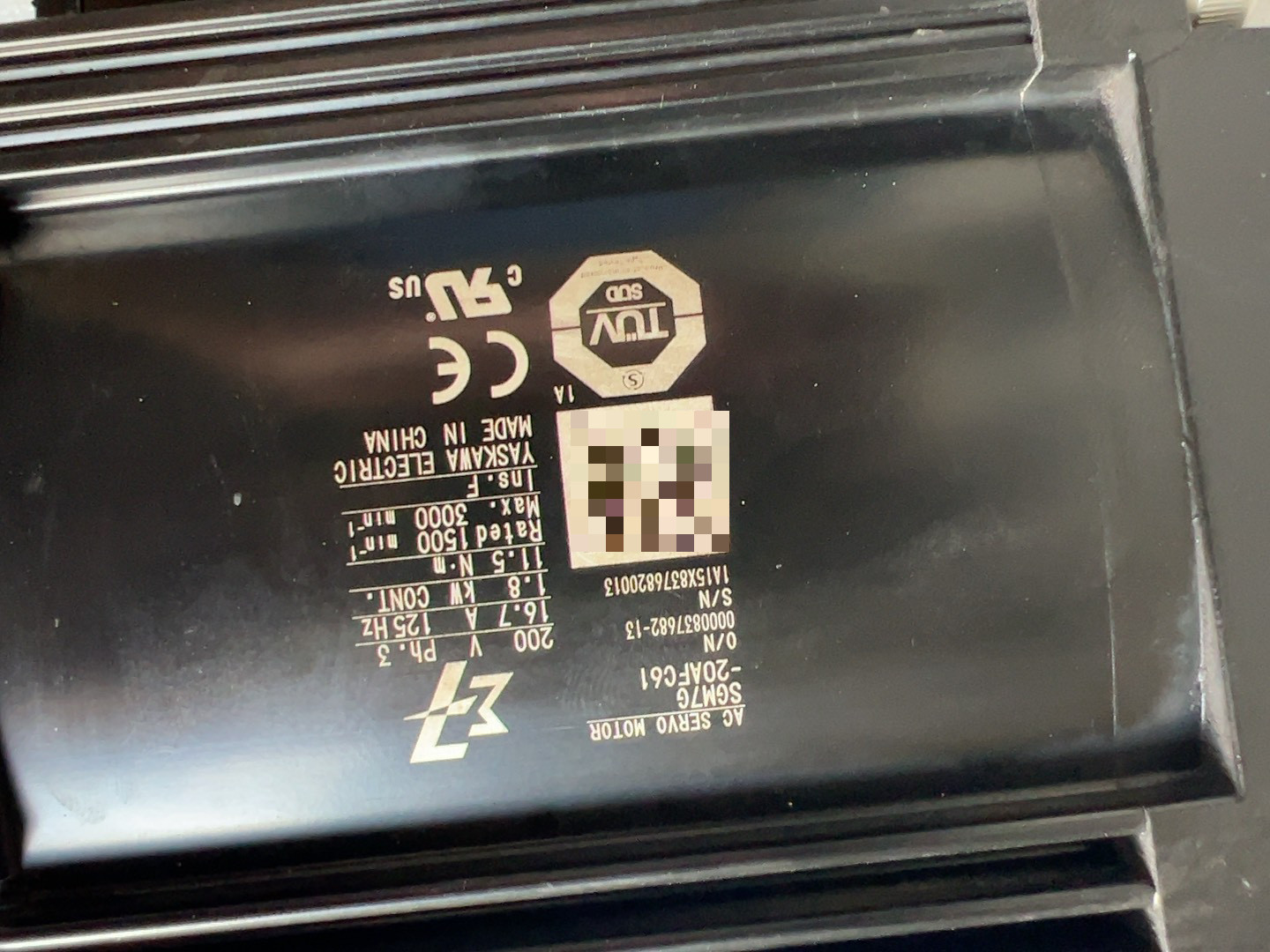 > 安川7系伺服电机SG7M-20AFC61,1.8KW,原装正