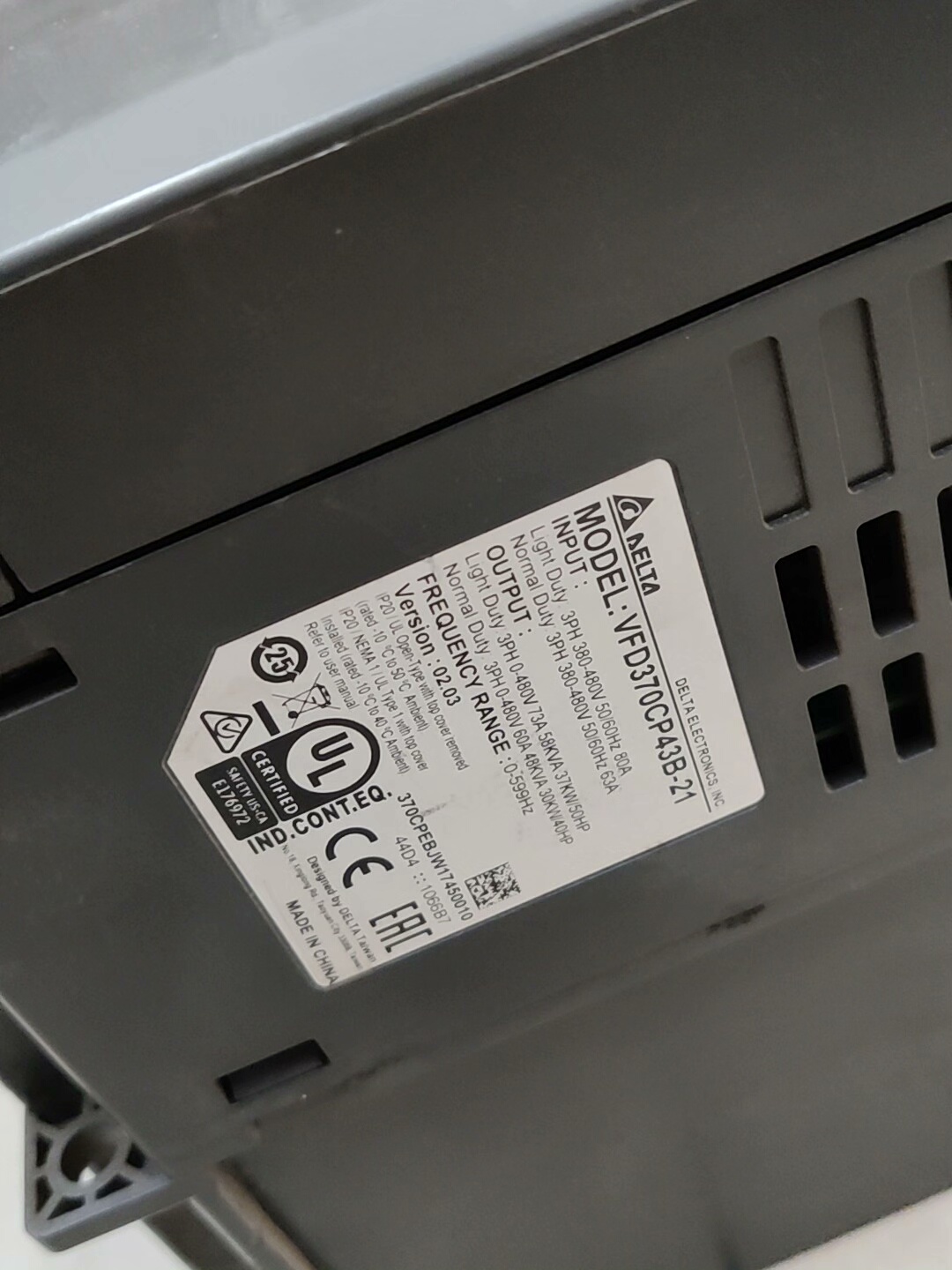 > 台达变频器VFD370CP43B-21,重载30KW,拆机实