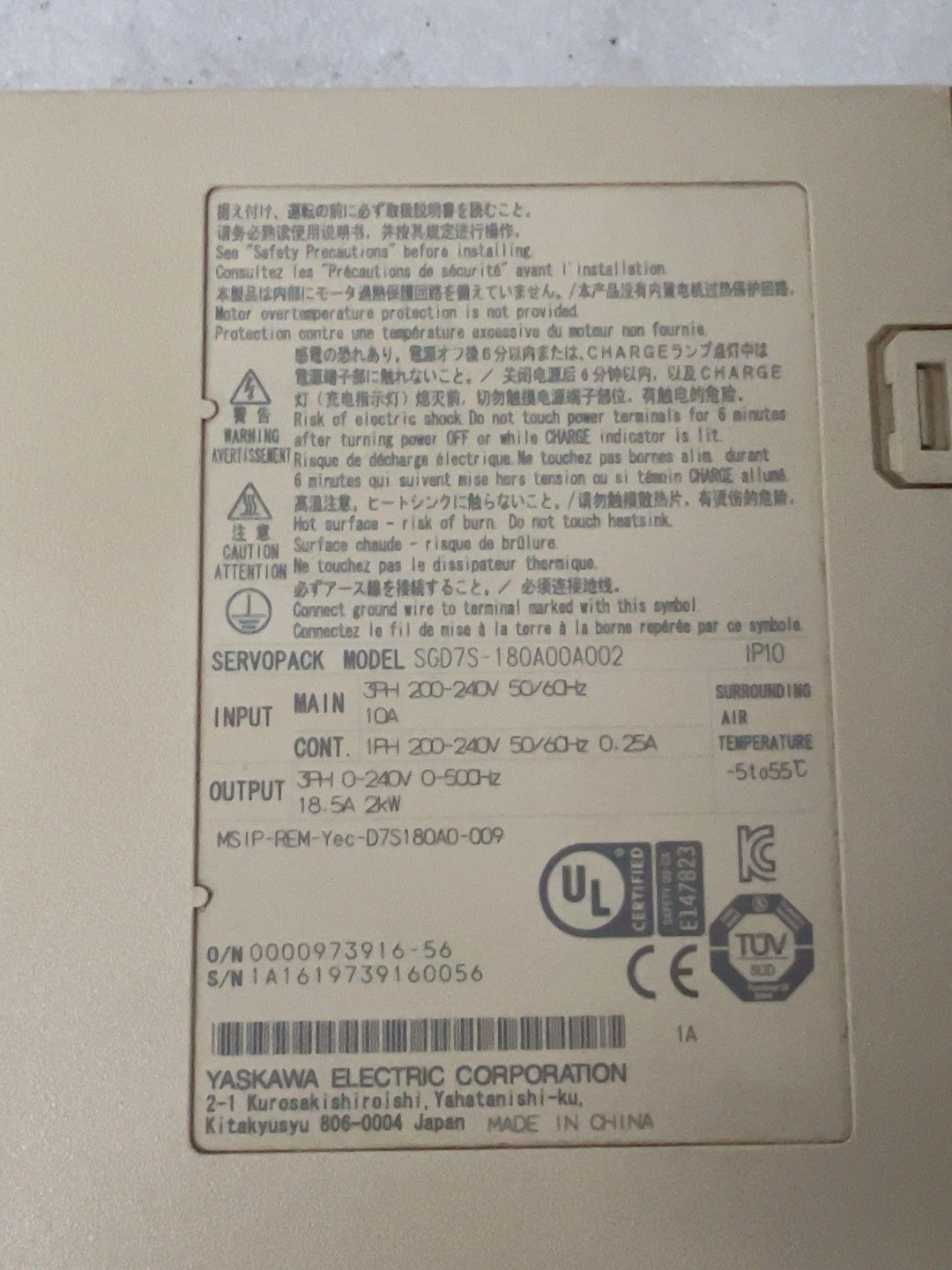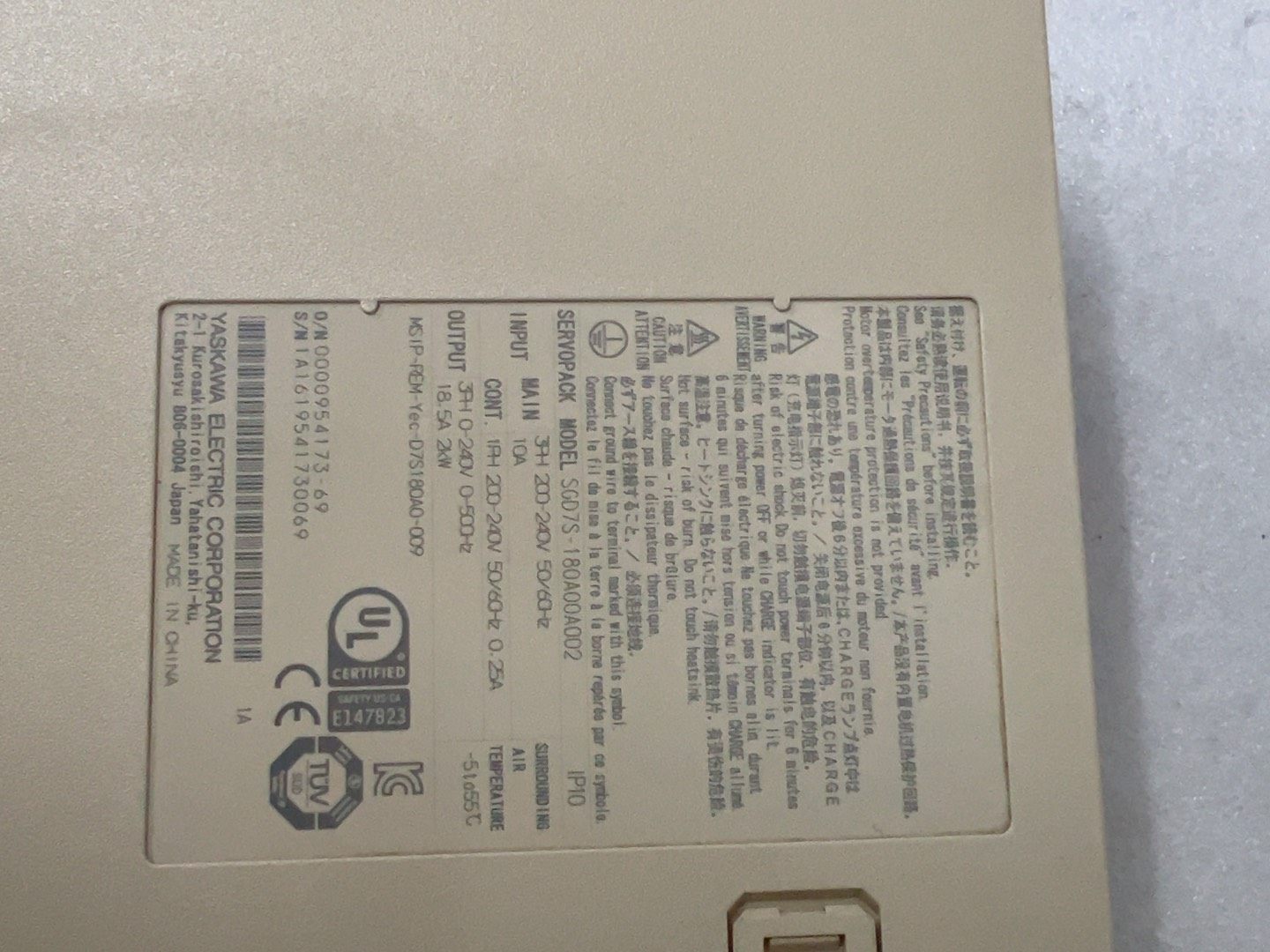 安川7系伺服驱动器SGD7S-180A00A002,2KW,