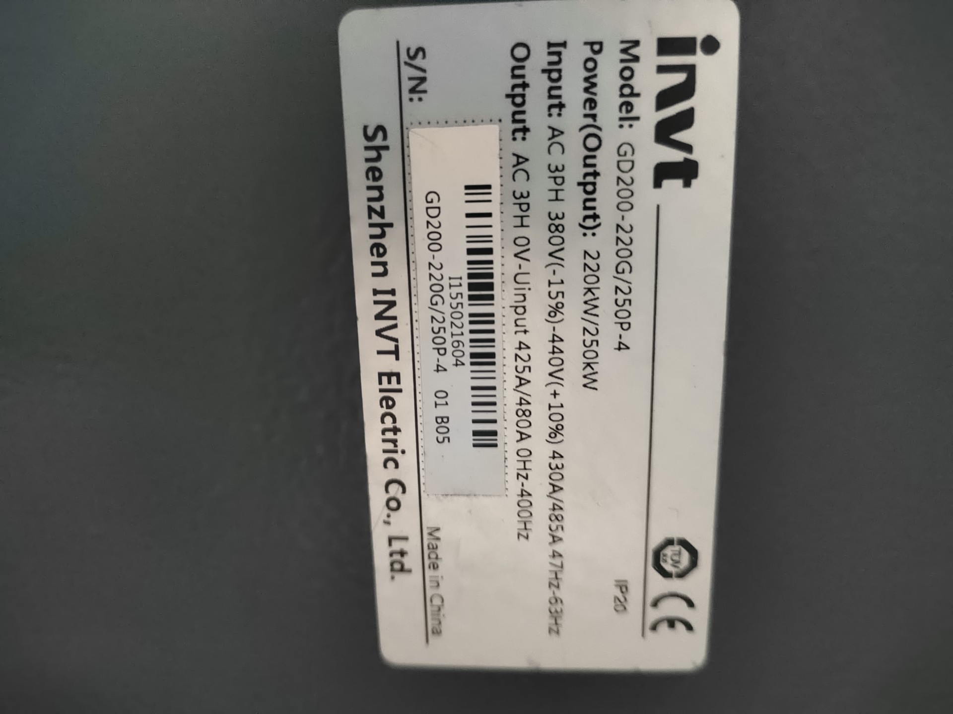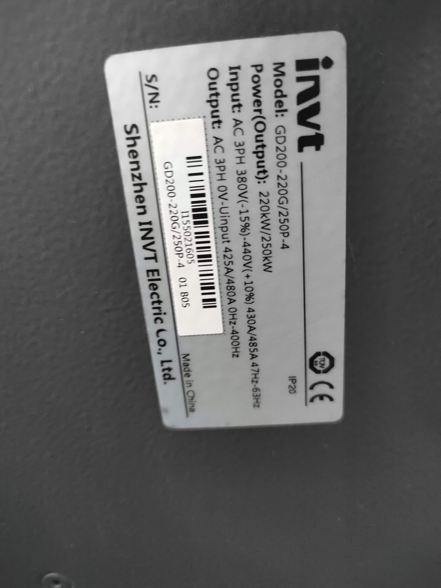 > 英威腾变频器 185kw 200kw 220kw