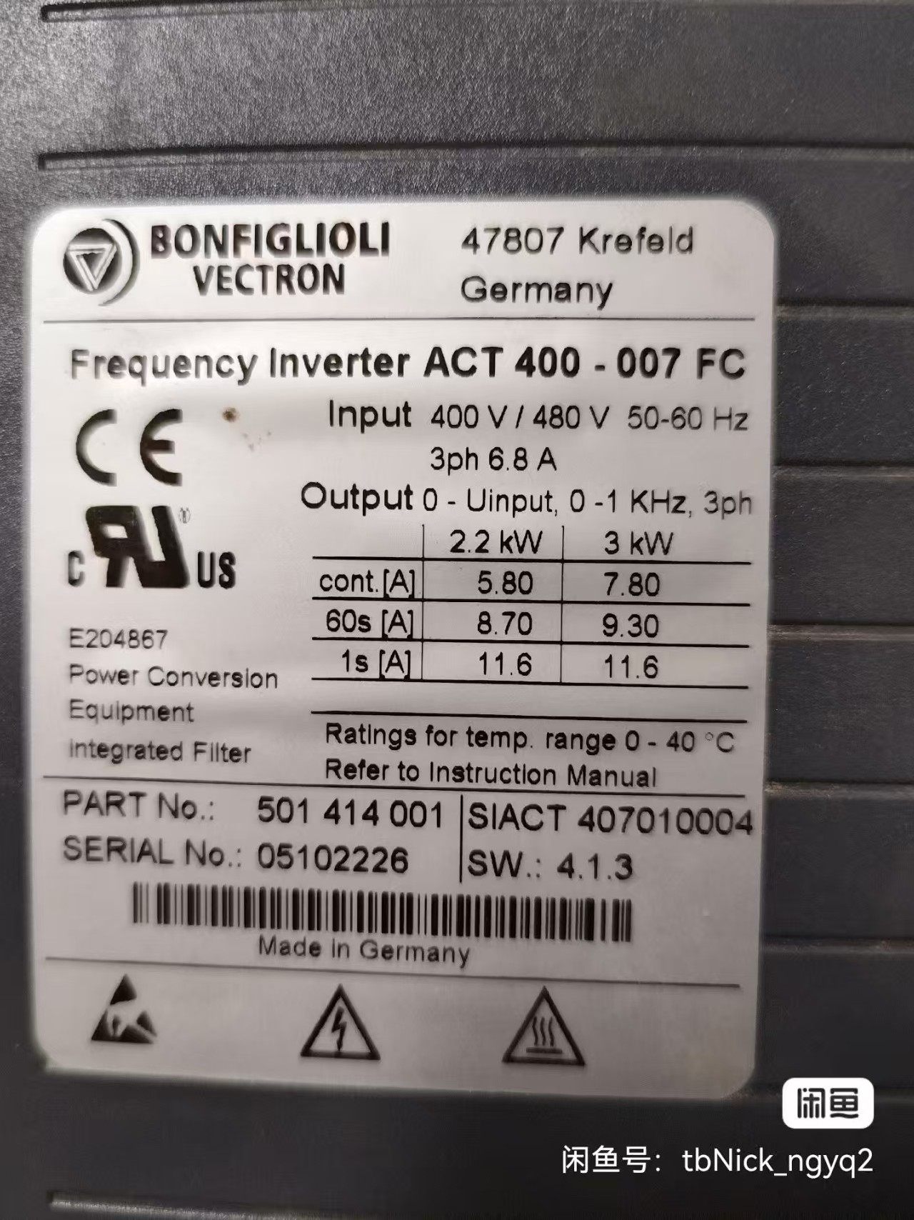 > 原装拆机Bonfiglioli 邦飞利 变频器ACT 40