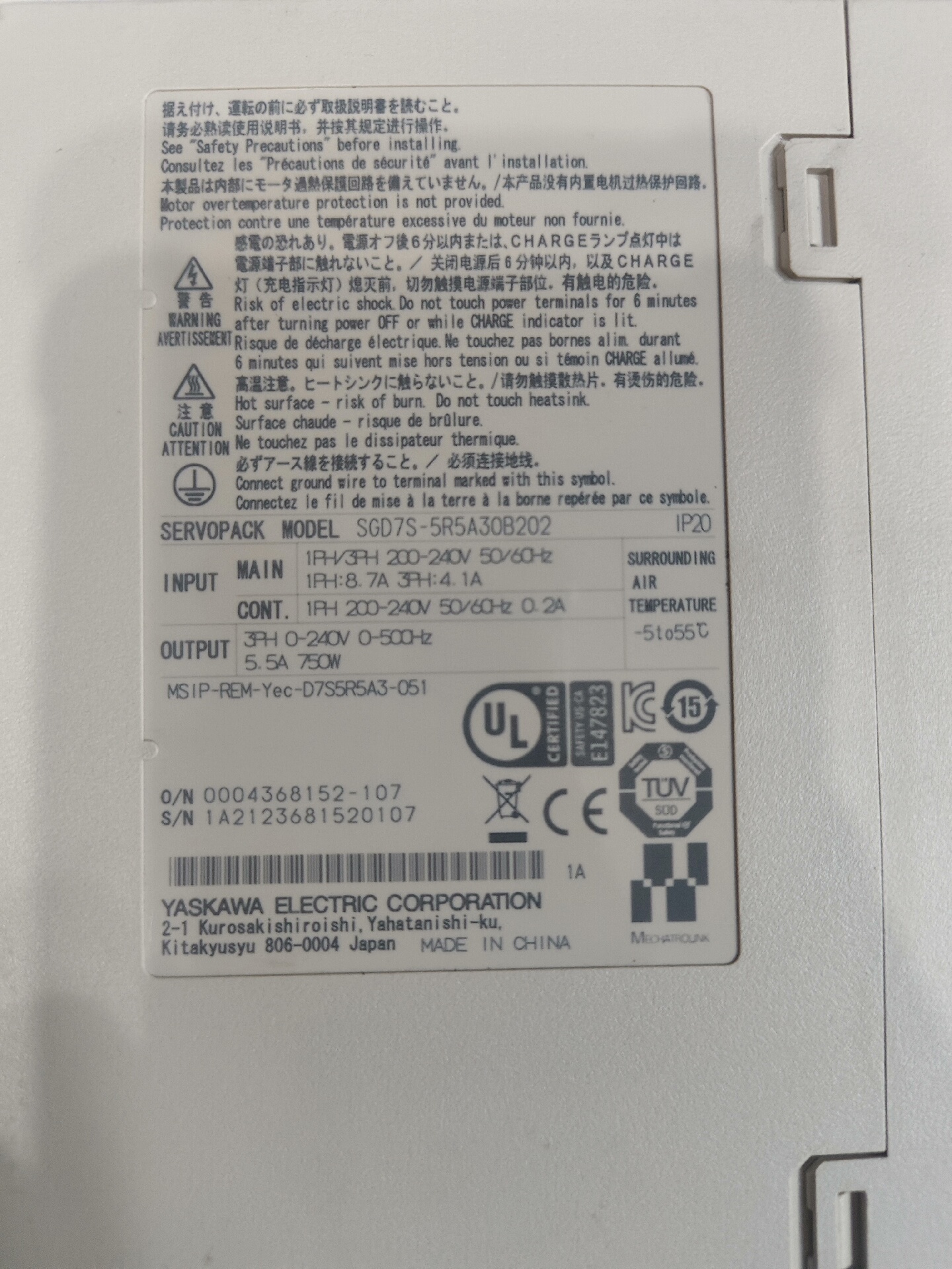 安川伺服驱动器SGD7S-5R5A30B202