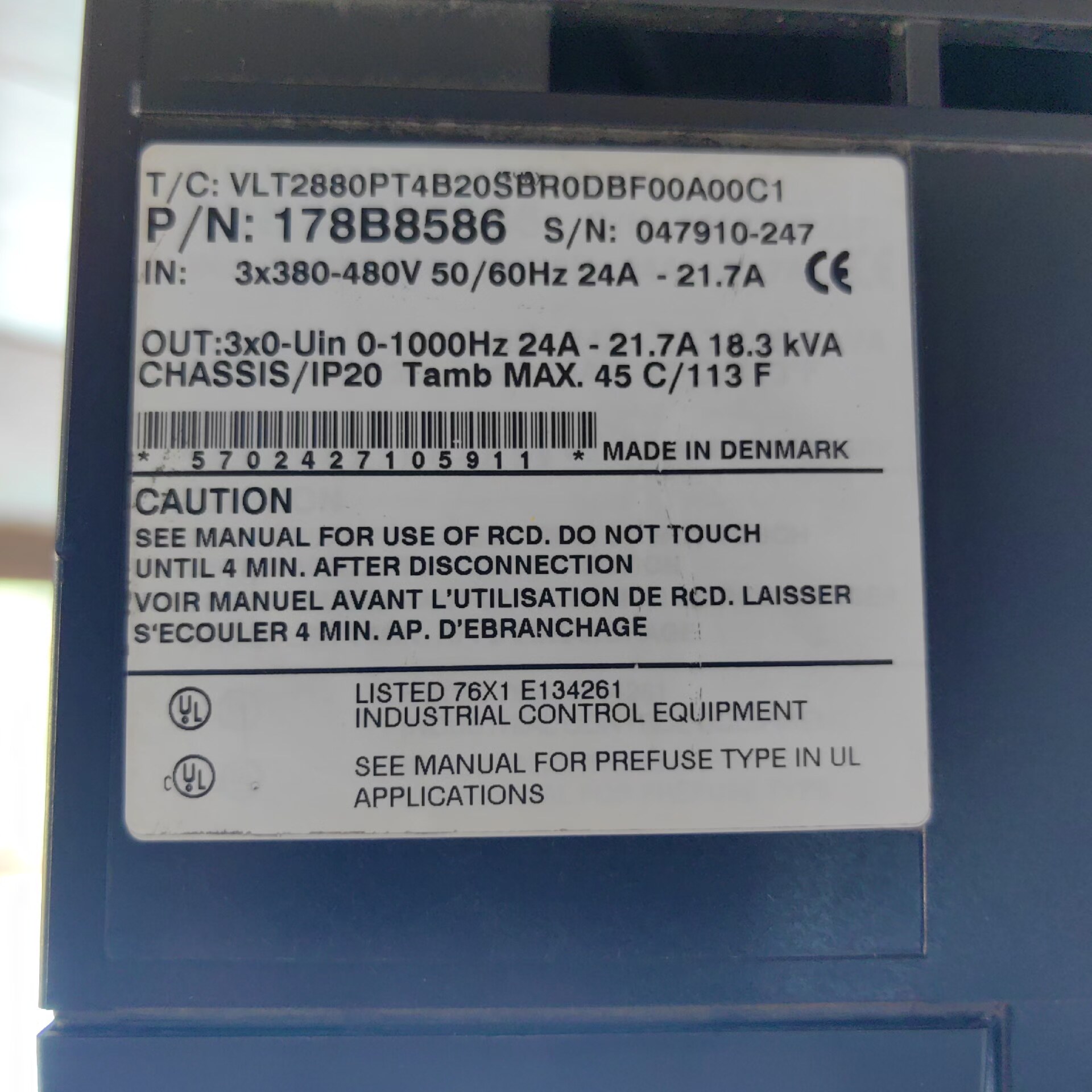> 丹佛斯变频器 VLT2880PT4B20SBR STR V