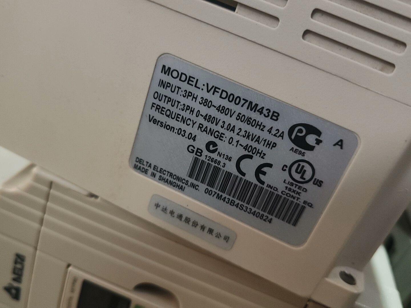 台达变频器,VFD-M,0.75kw,380V,测试好,成色