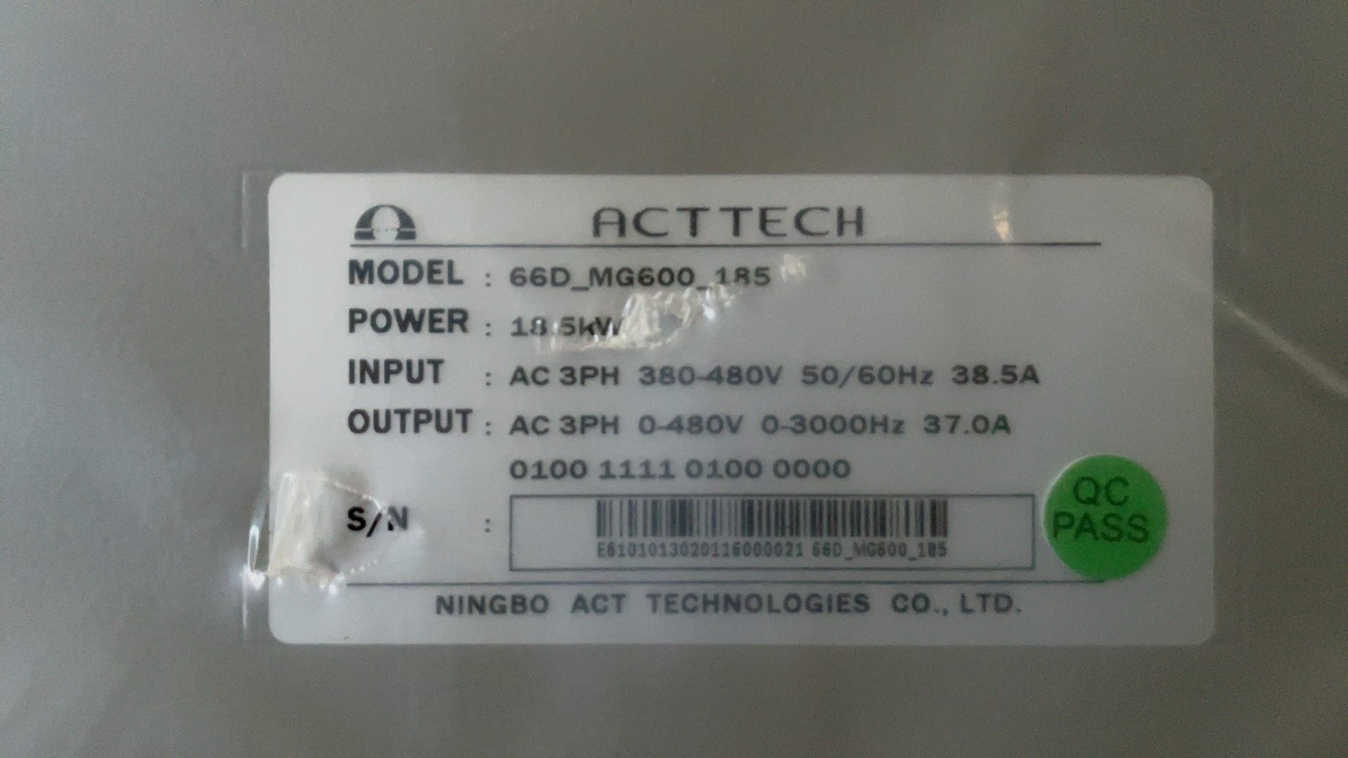 ACTTECH变频器,型号66D_MG600_185,18.