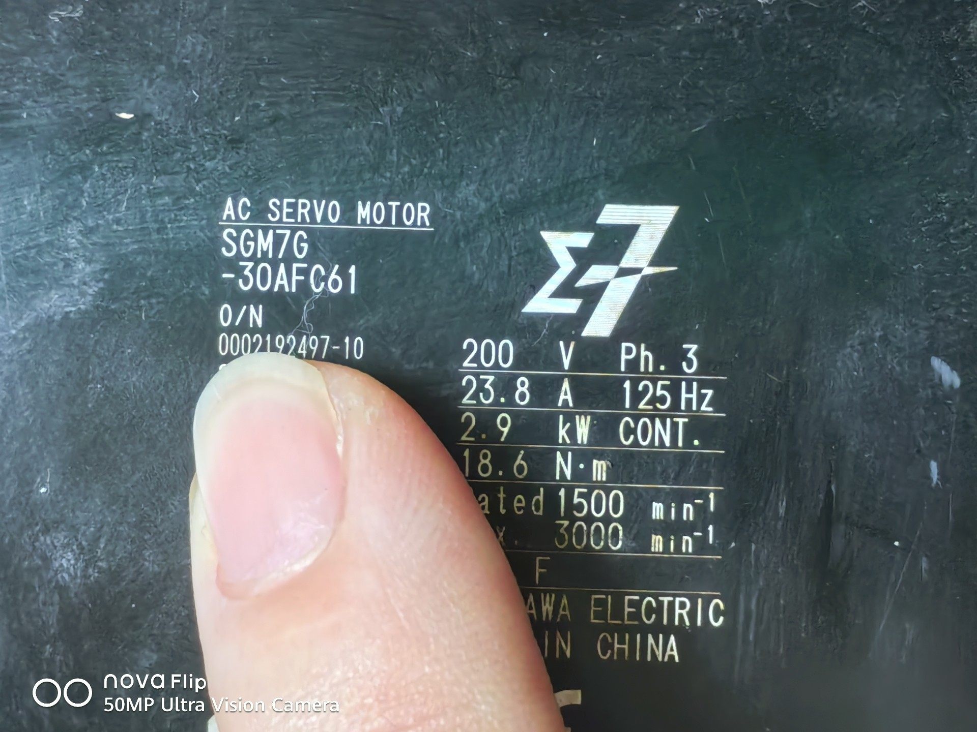 > 安川伺服电机,型号SGM7G-30AFC61,2.9KW功率
