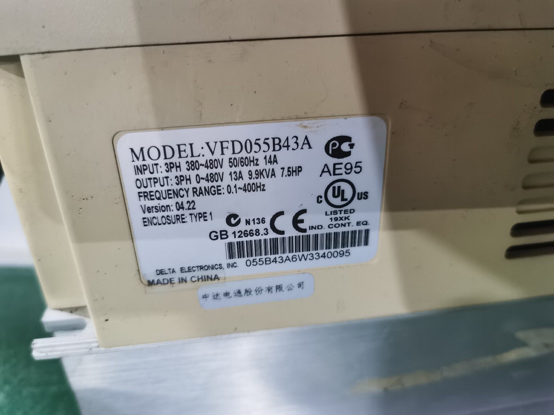台达VFD-B系列变频器 VFD055B43A 三相380