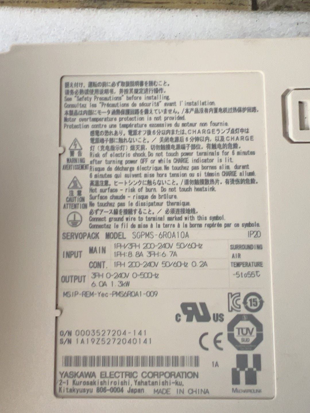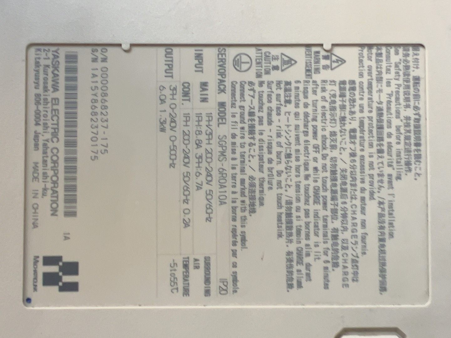 安川伺服驱动器SGPMS-6R0A10A,1.3KW,原装正