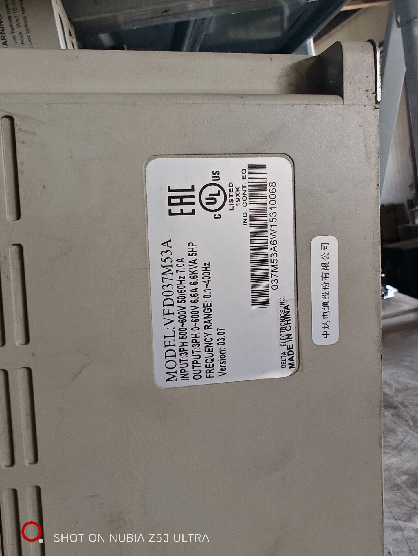 > 台达VFD037M53A变频器3.7kw-500v原装拆机