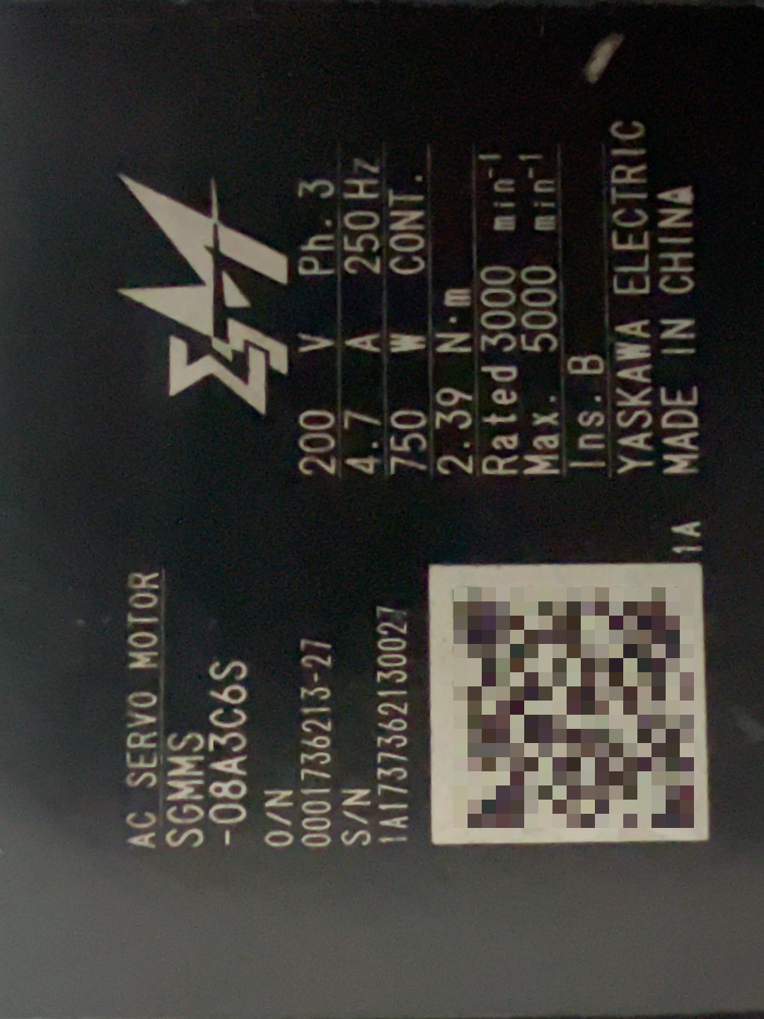 安川伺服电机SGMMS-08A3C6S,750W,原装正品,