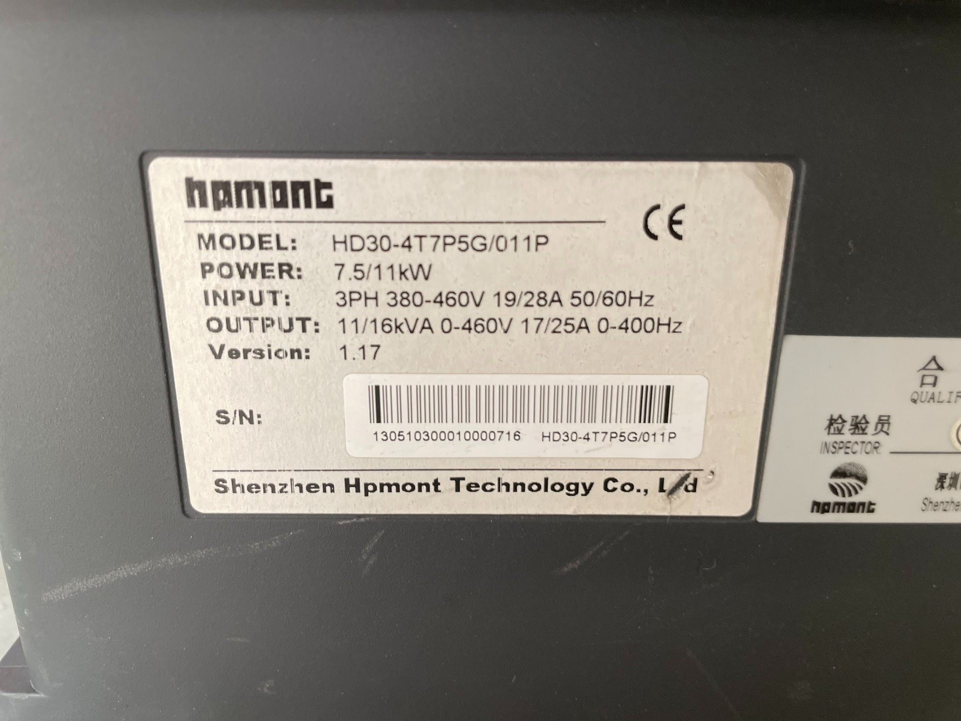 五台,海浦蒙特变频器,型号HD30-4T7P5G/011P,