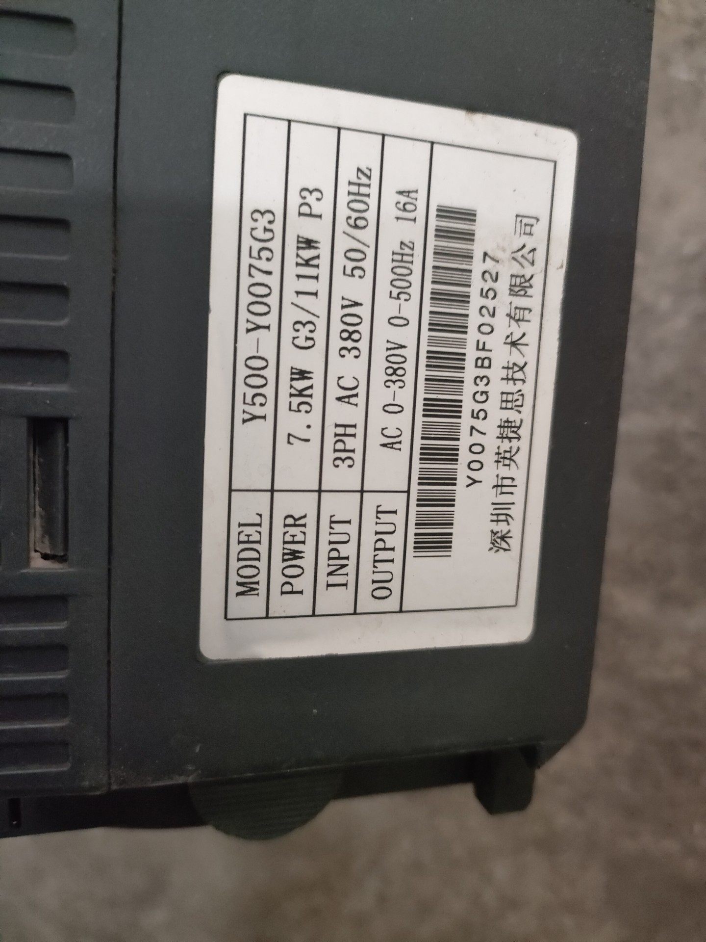 > 英捷思变频器Y500-Y0075G3 380V 7
