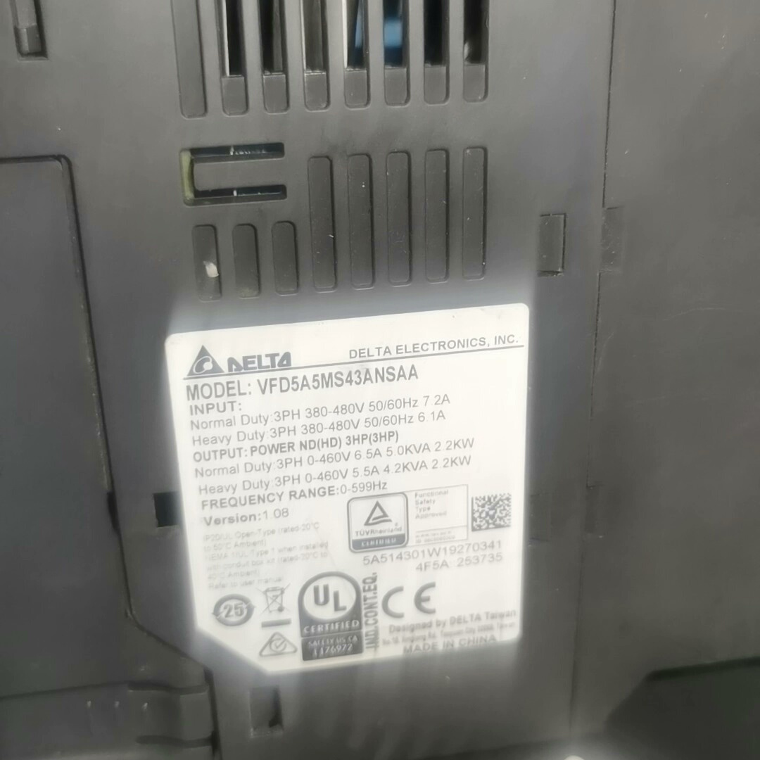 台达VFD5A5MS43ANSAA 2.2KW测好发货,不