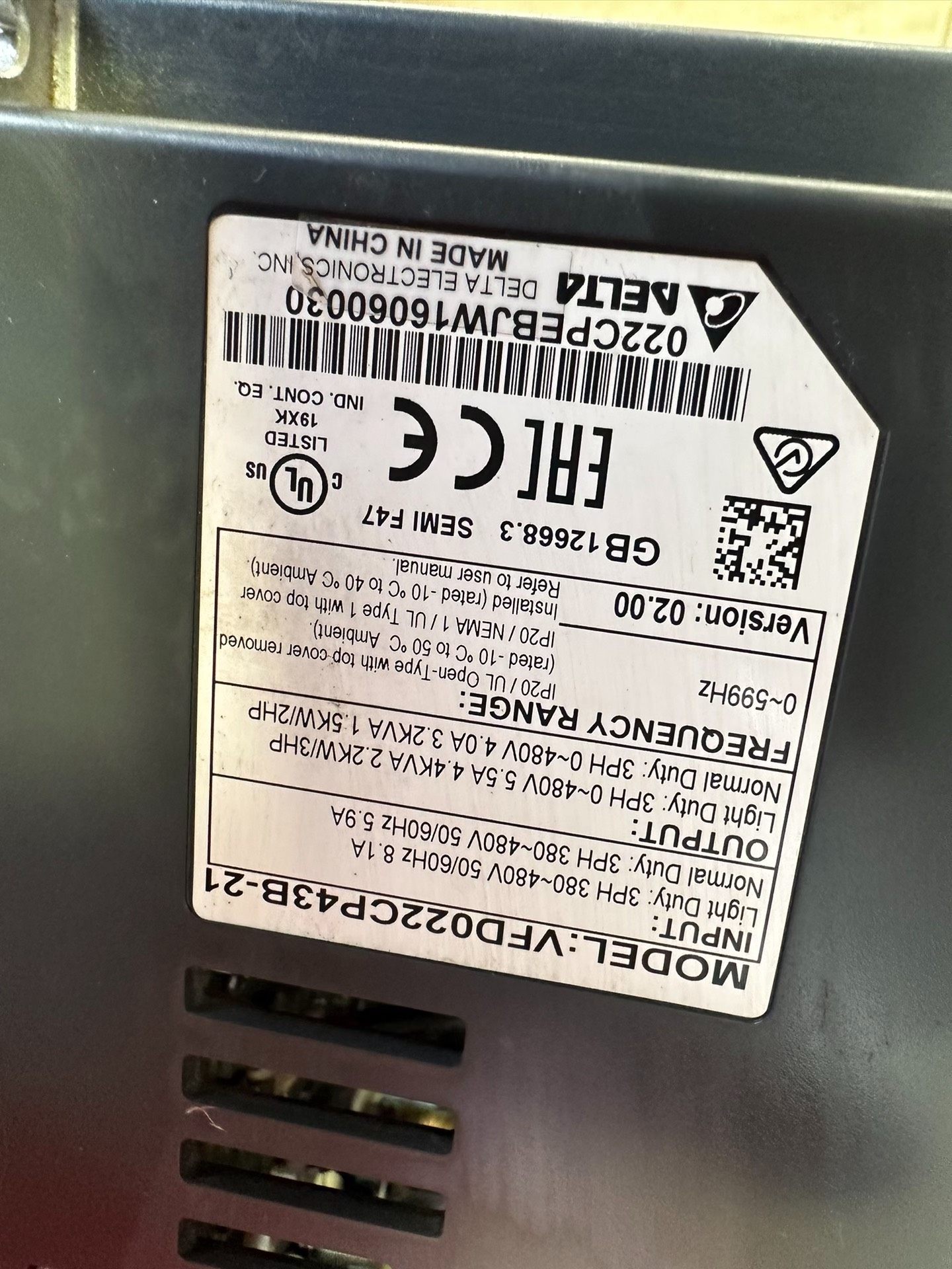 拆机16年台达CP2000系列变频器一台,