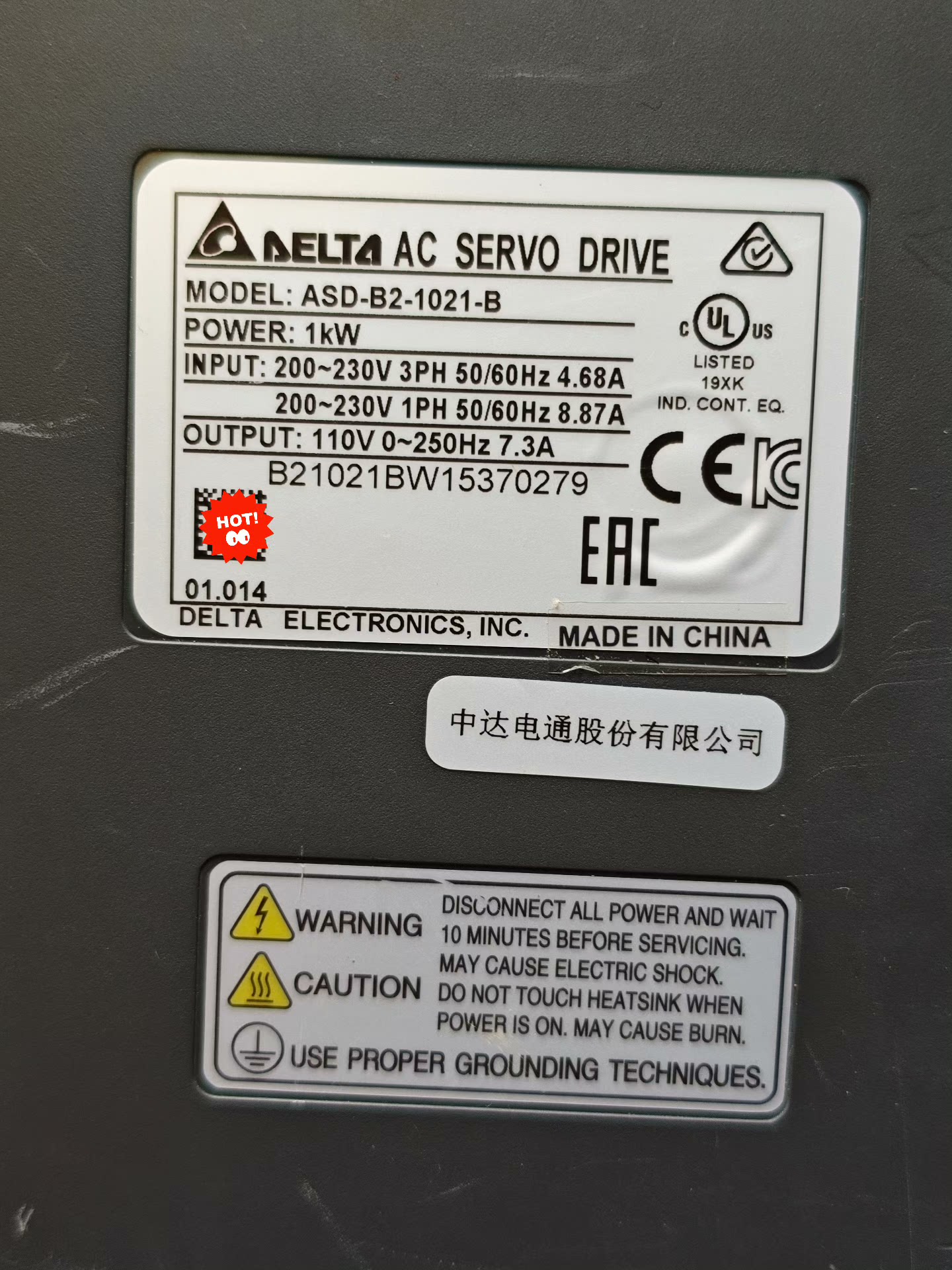 > 台达伺服驱动器 ASD-B2-1021-B 1kW 剪线拆机