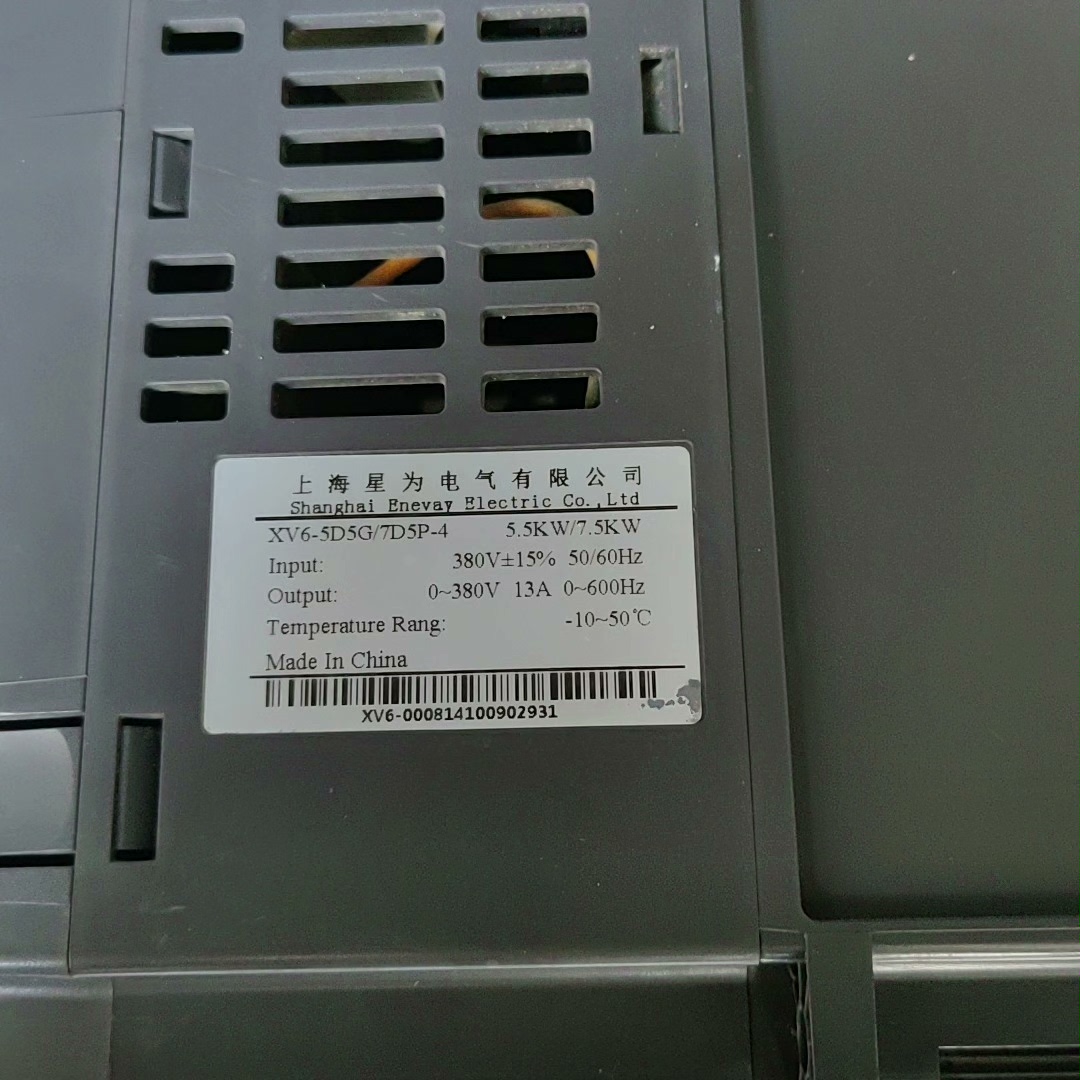 > 上海星为变频器,型号XV6-5D5G/7D5P-4,5.5K