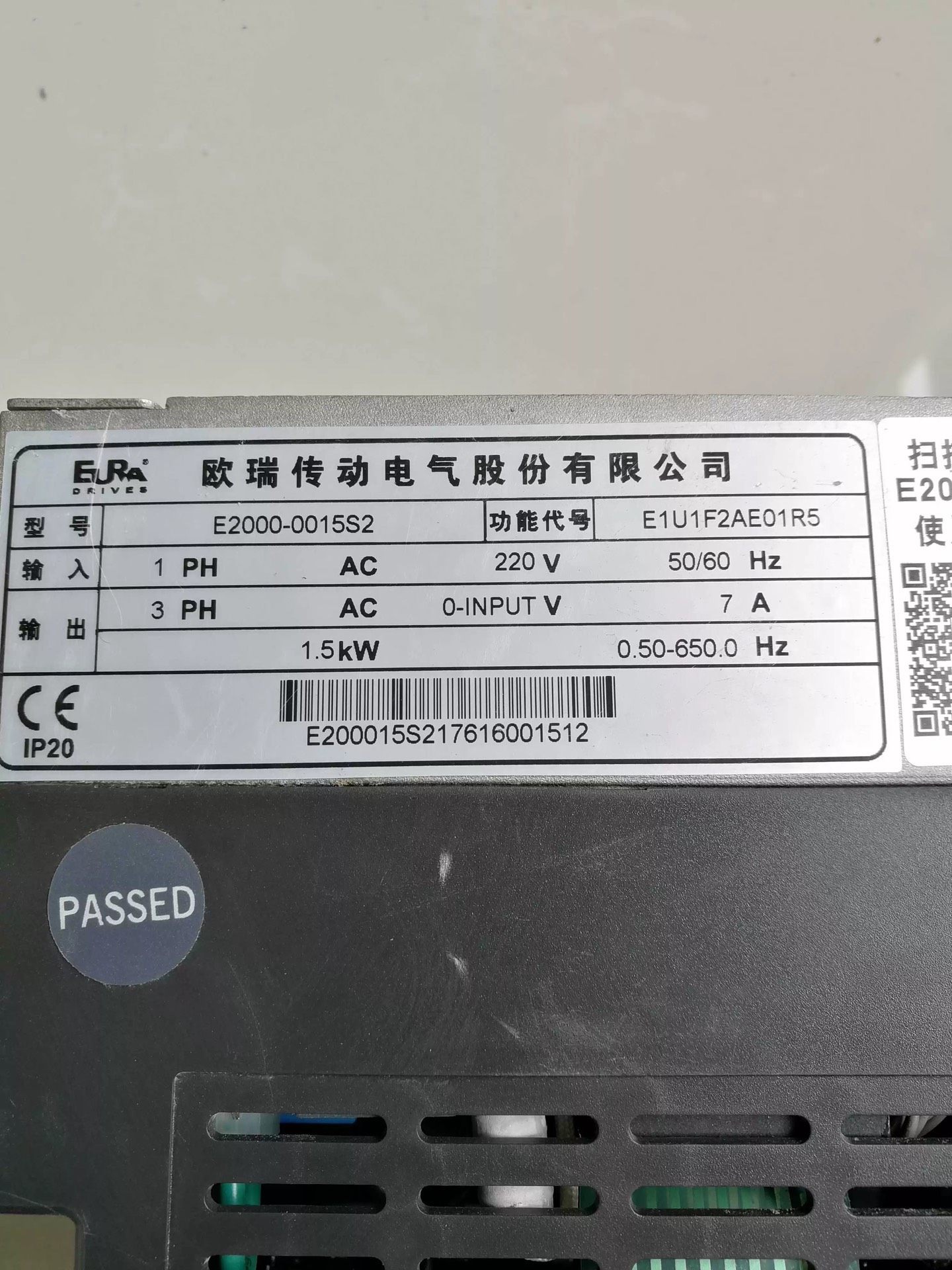 > E2000-0015S2欧瑞变频器 1.5KW 220V原装
