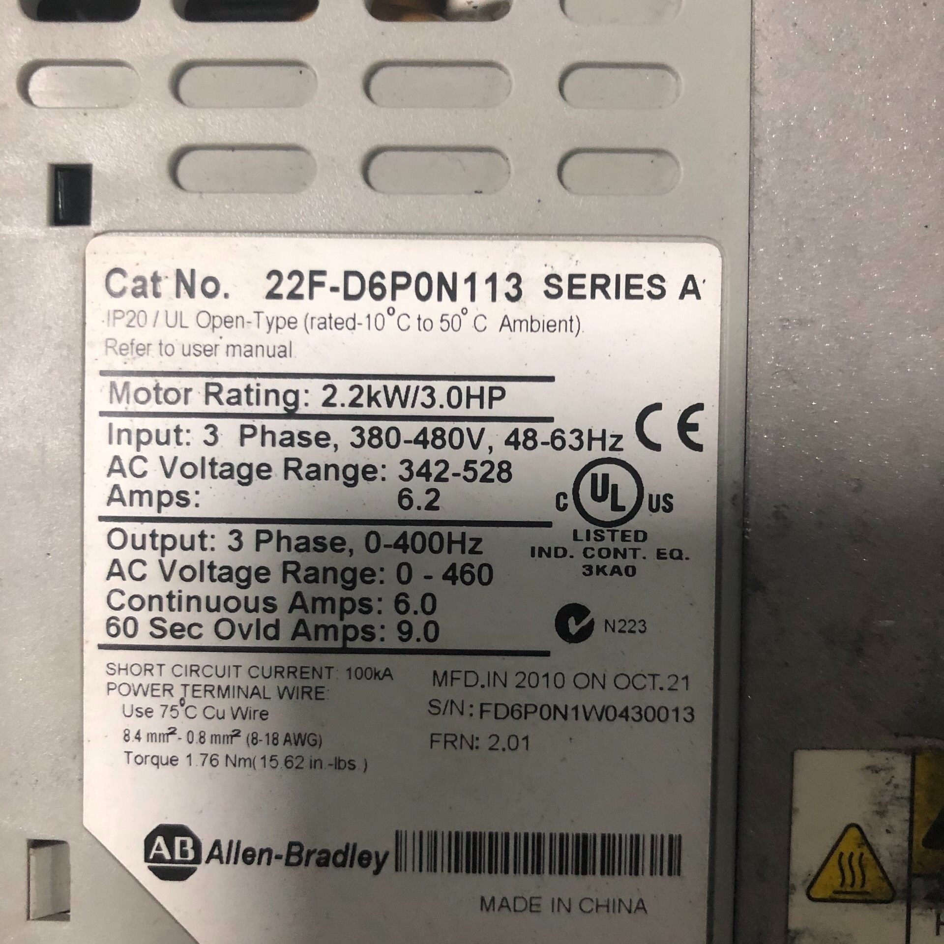 变频器 22F-D6P0N13 2.2KW 22FD1P5N