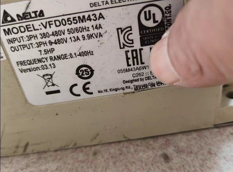 > 台达变频器VFD055M43A,7.5KW功率,380V三相