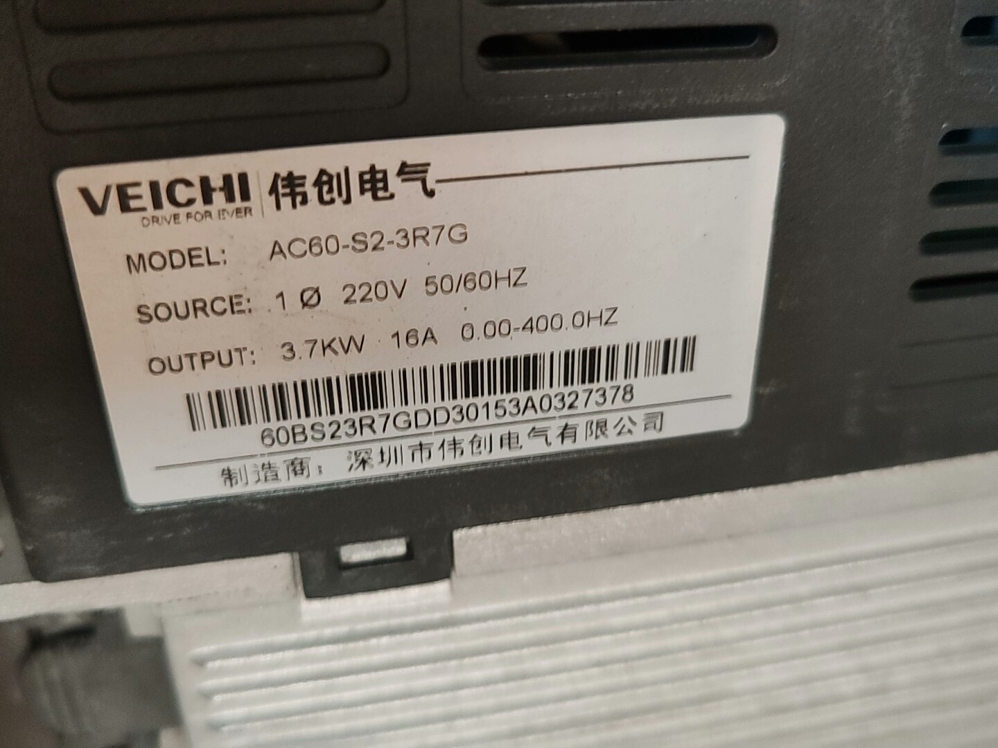 > 伟创变频器ac60,3.7kw,220V,测试好