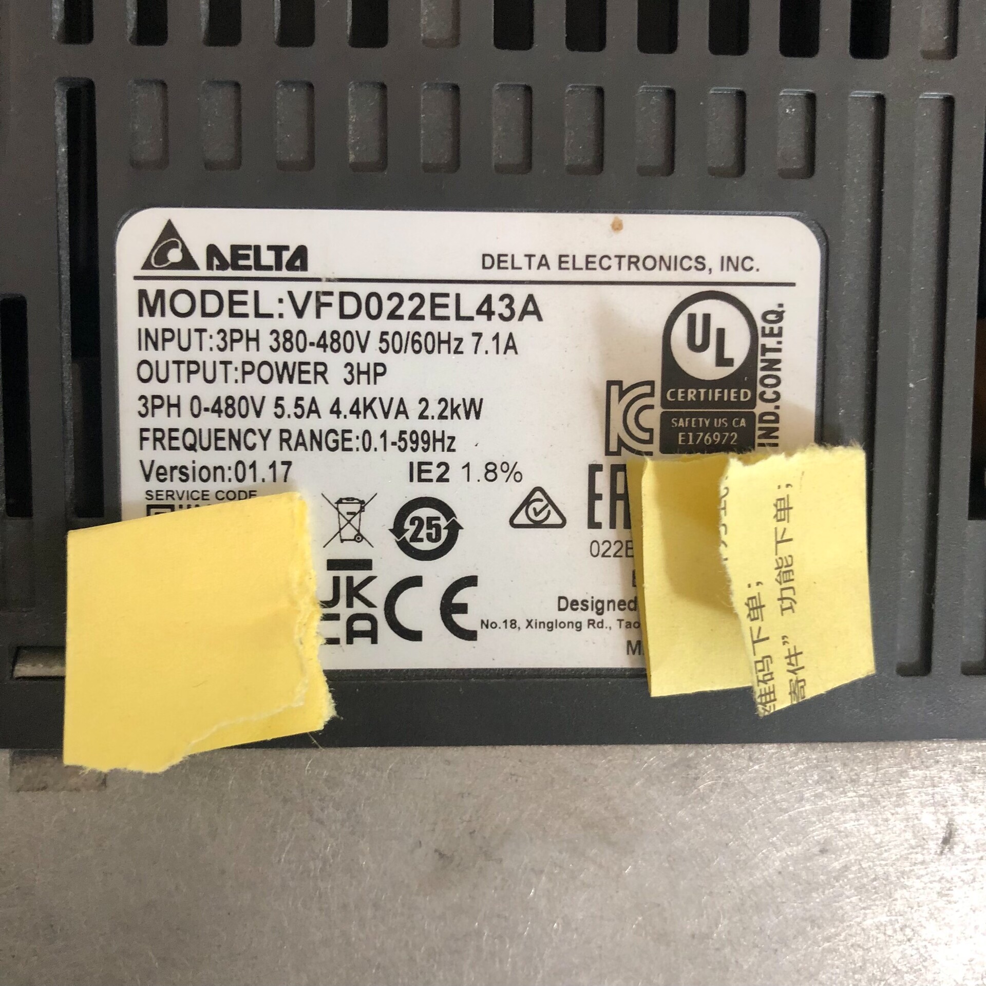 > 台达EL系列变频器2.2KW 三相380V VFD022EL