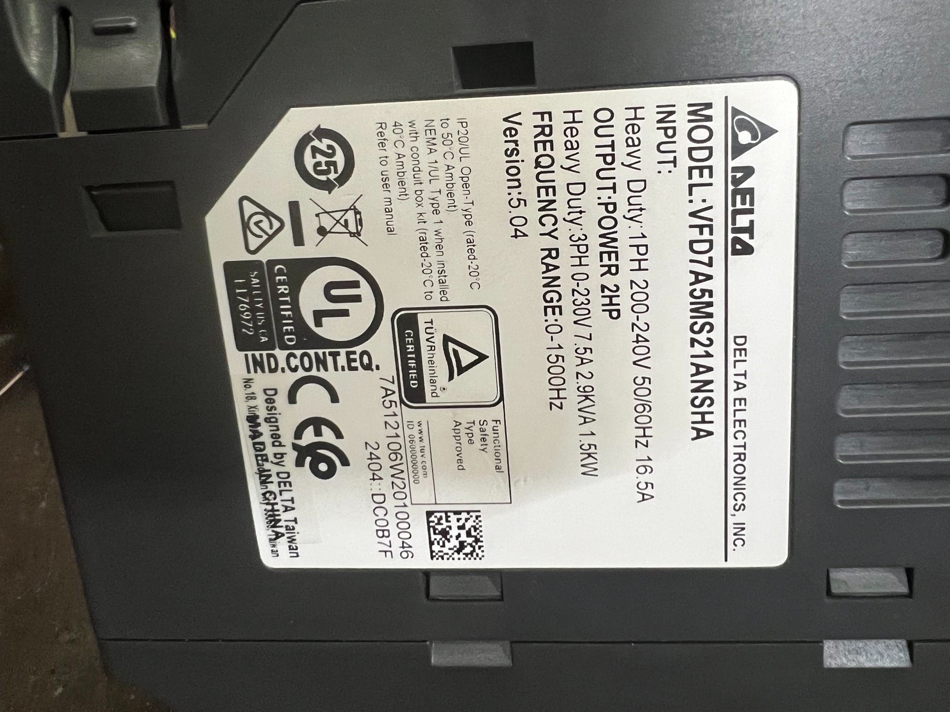 台达MS300变频器0.75KW,1.5KW,220V,实物