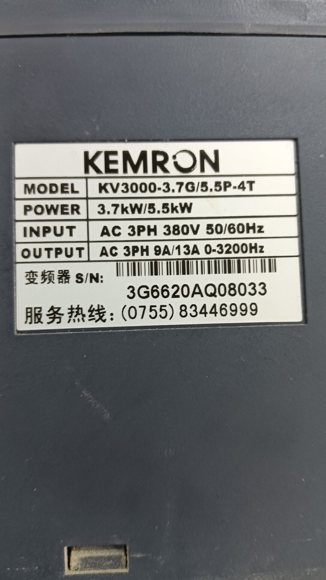 > 科姆龙变频器KV3000-3.7G/5.5P-4T,380V