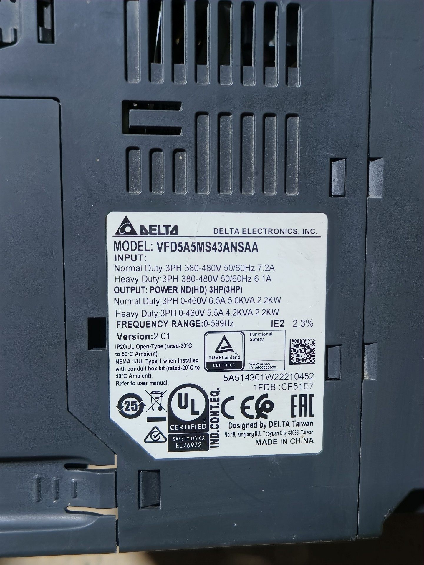 台达变频器VFD5A5MS43ANSAA 年份近