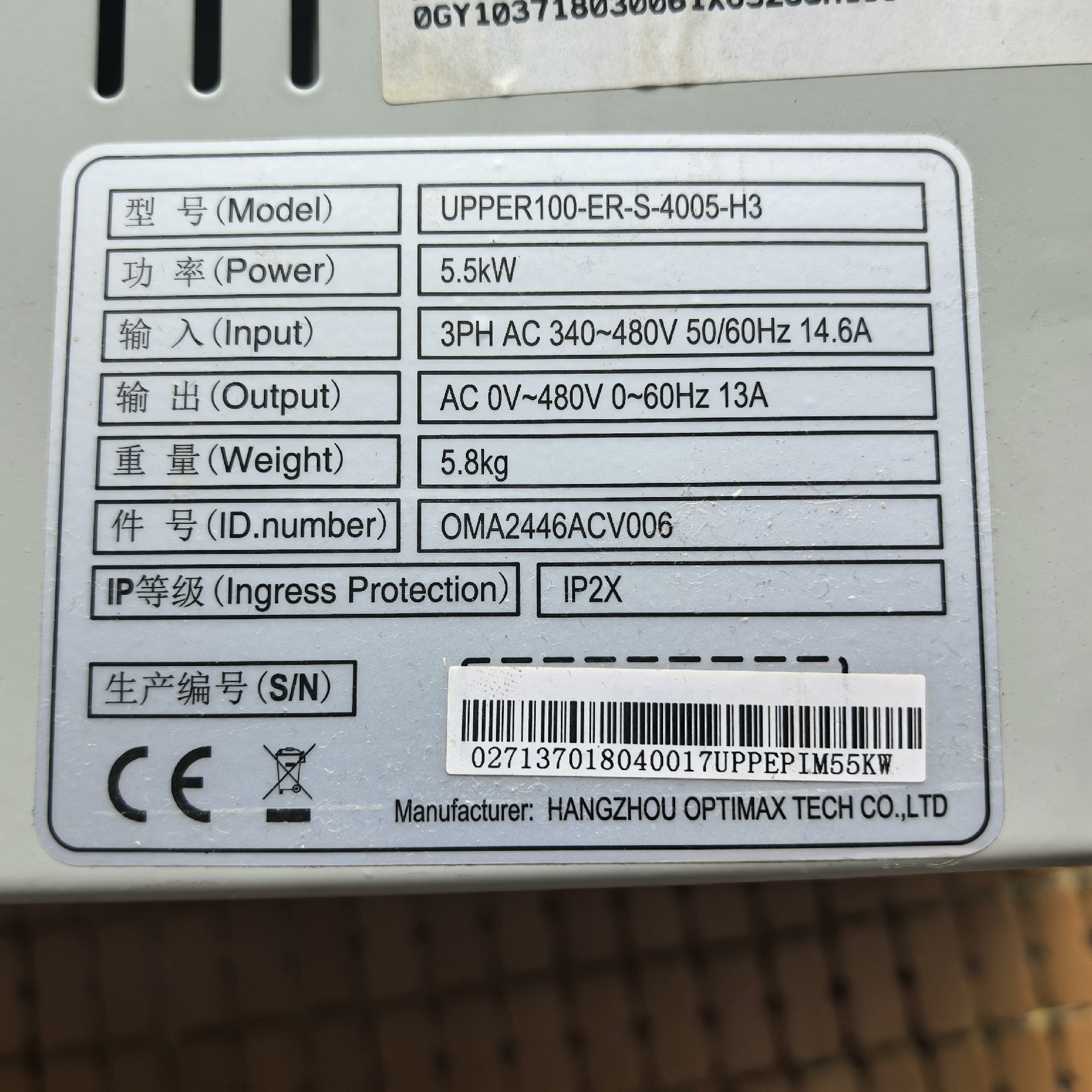UPPER100-ER-S-4005-H3扶梯变频器,功率: