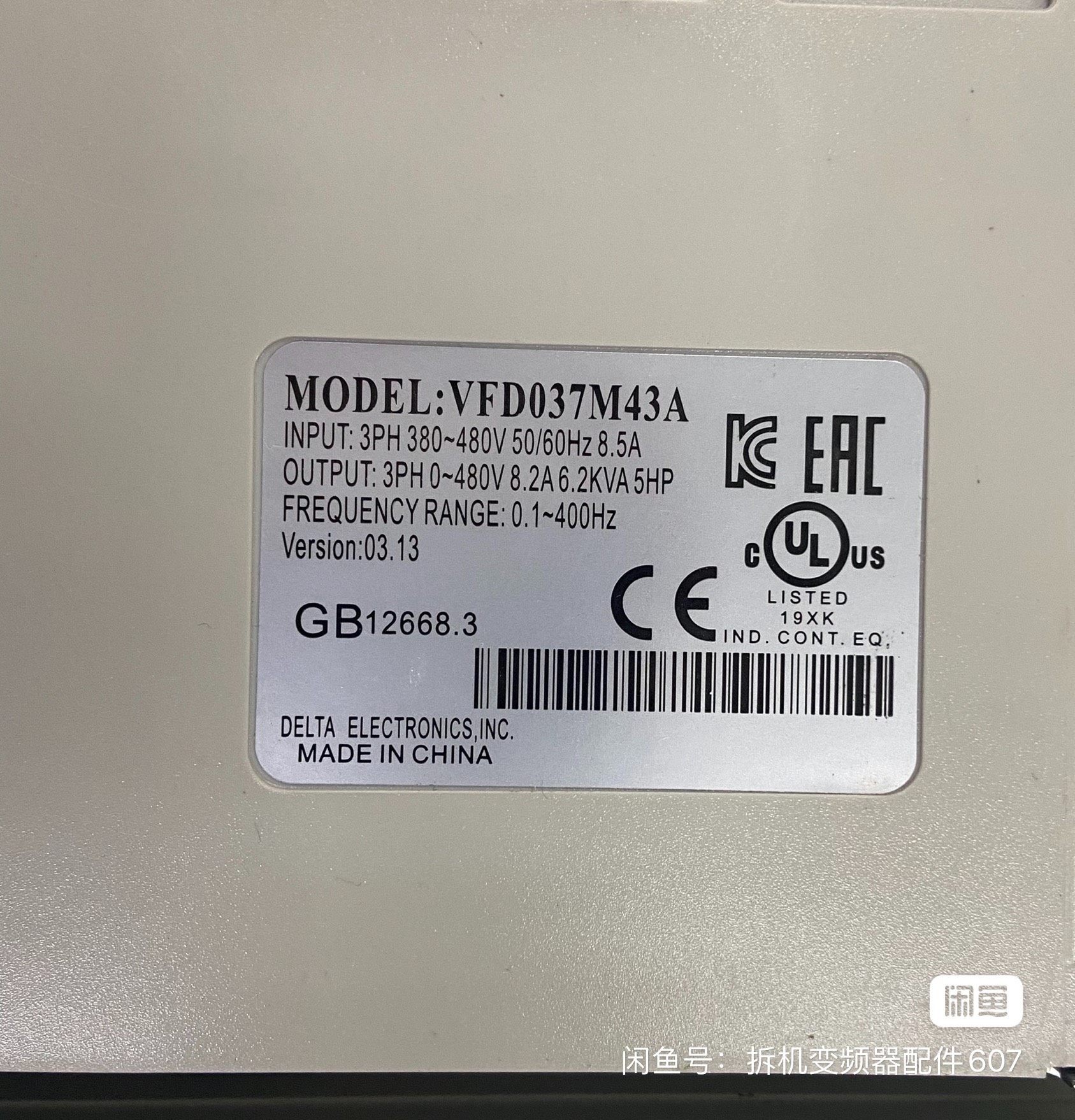 > 拆机原装台达变频器VFD037M43A 3.7KW 380V