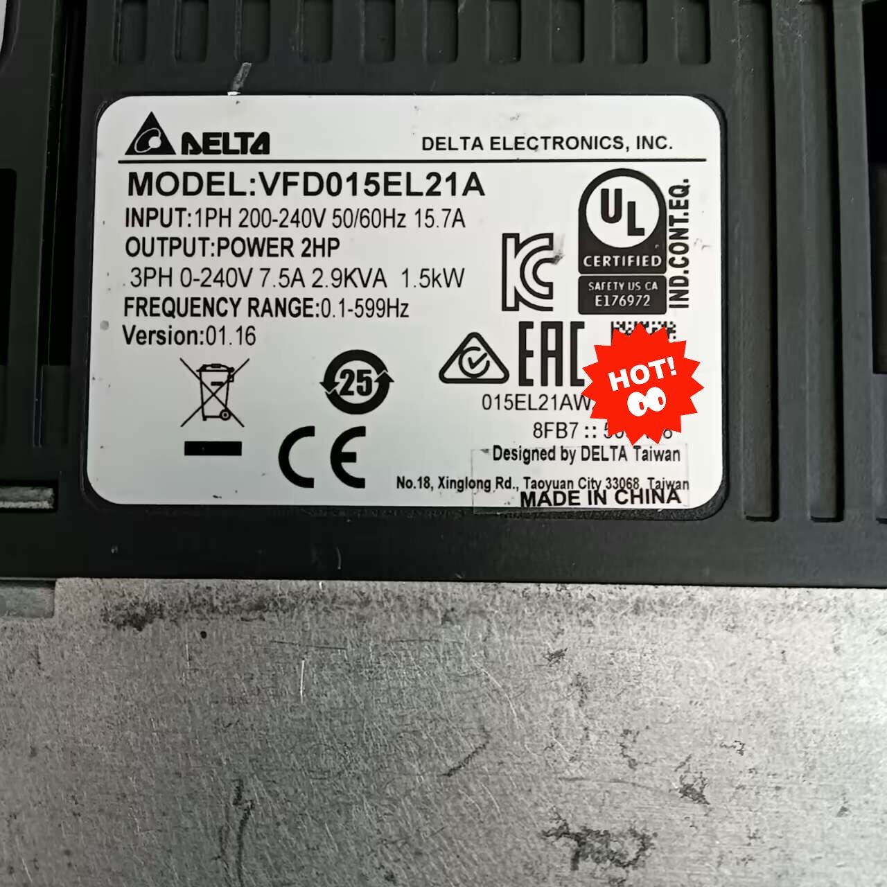 台达VFD-EL系列变频器1.5Kw单相220V