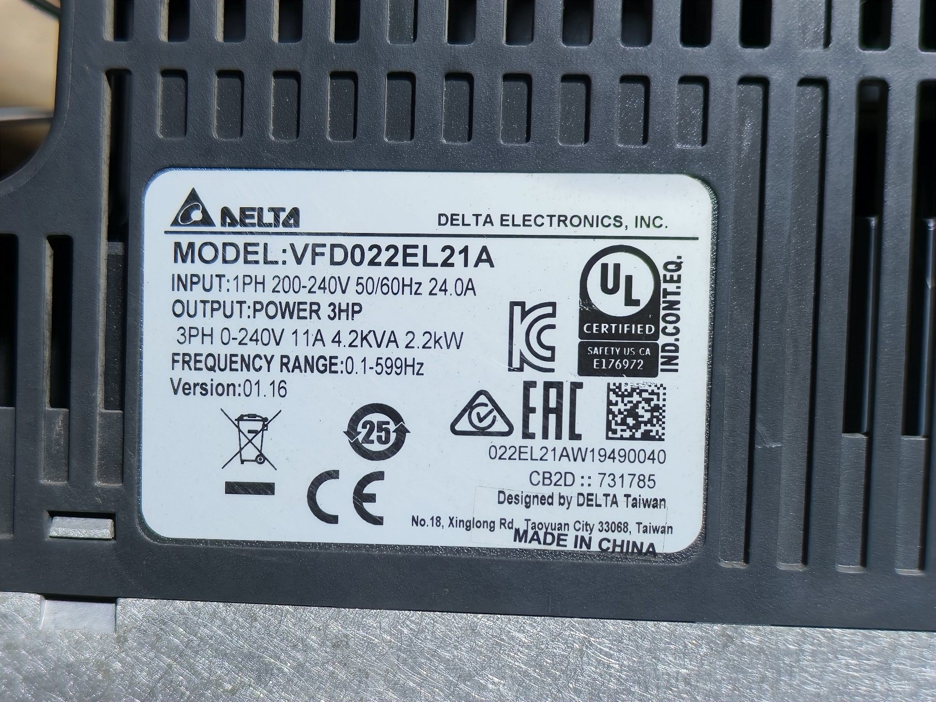 台达变频器VFD022EL21A 年份近 成色漂亮