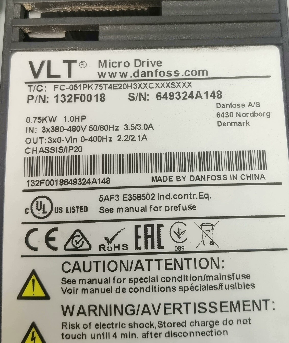 变频器,丹佛斯FC-051PK75T4E20H3 0.75