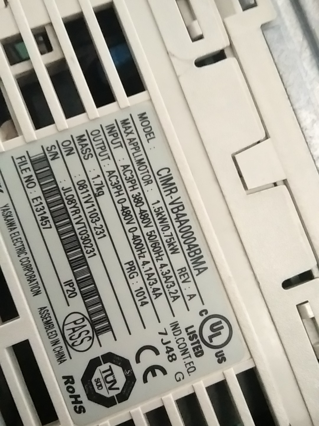 安川变频器CIMR-VB4A0004BMA原装拆机实物拍摄,