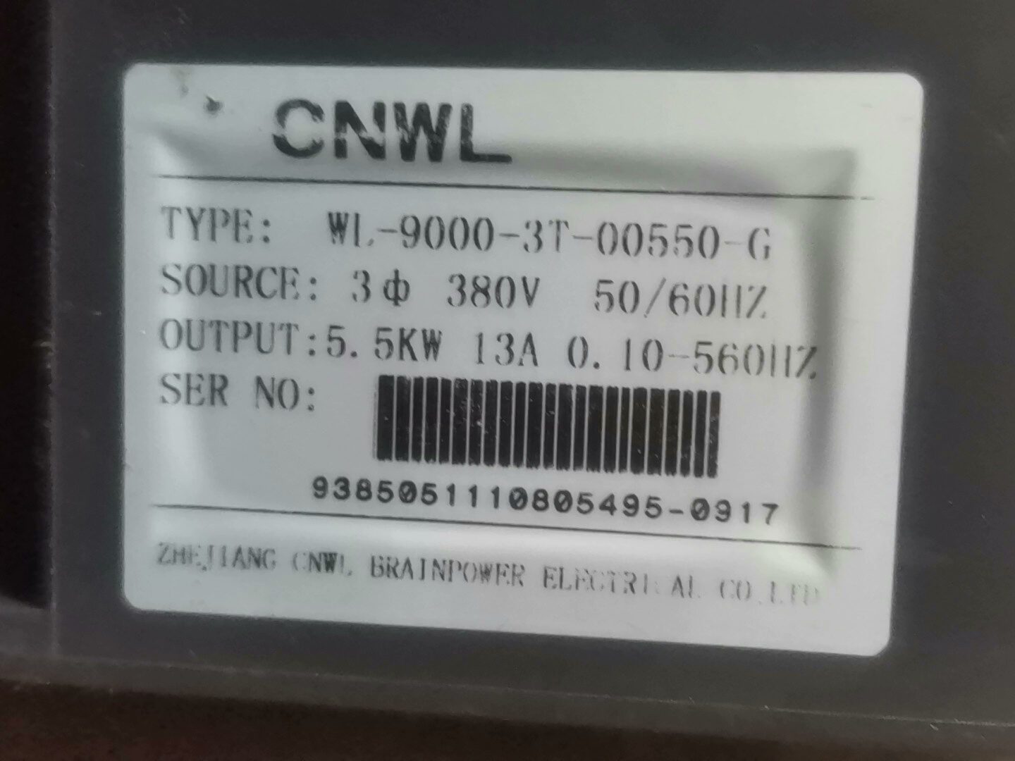 > 万龙WL-9000-3T变频器,380V,5.5KW一台,成