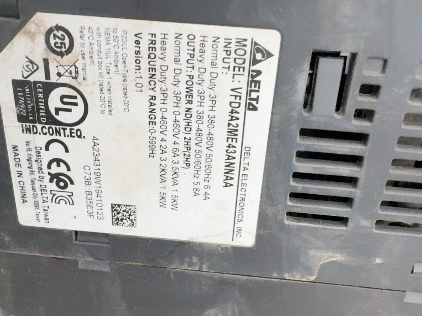 > 台达ME300。VFD4A2ME43ANNAA